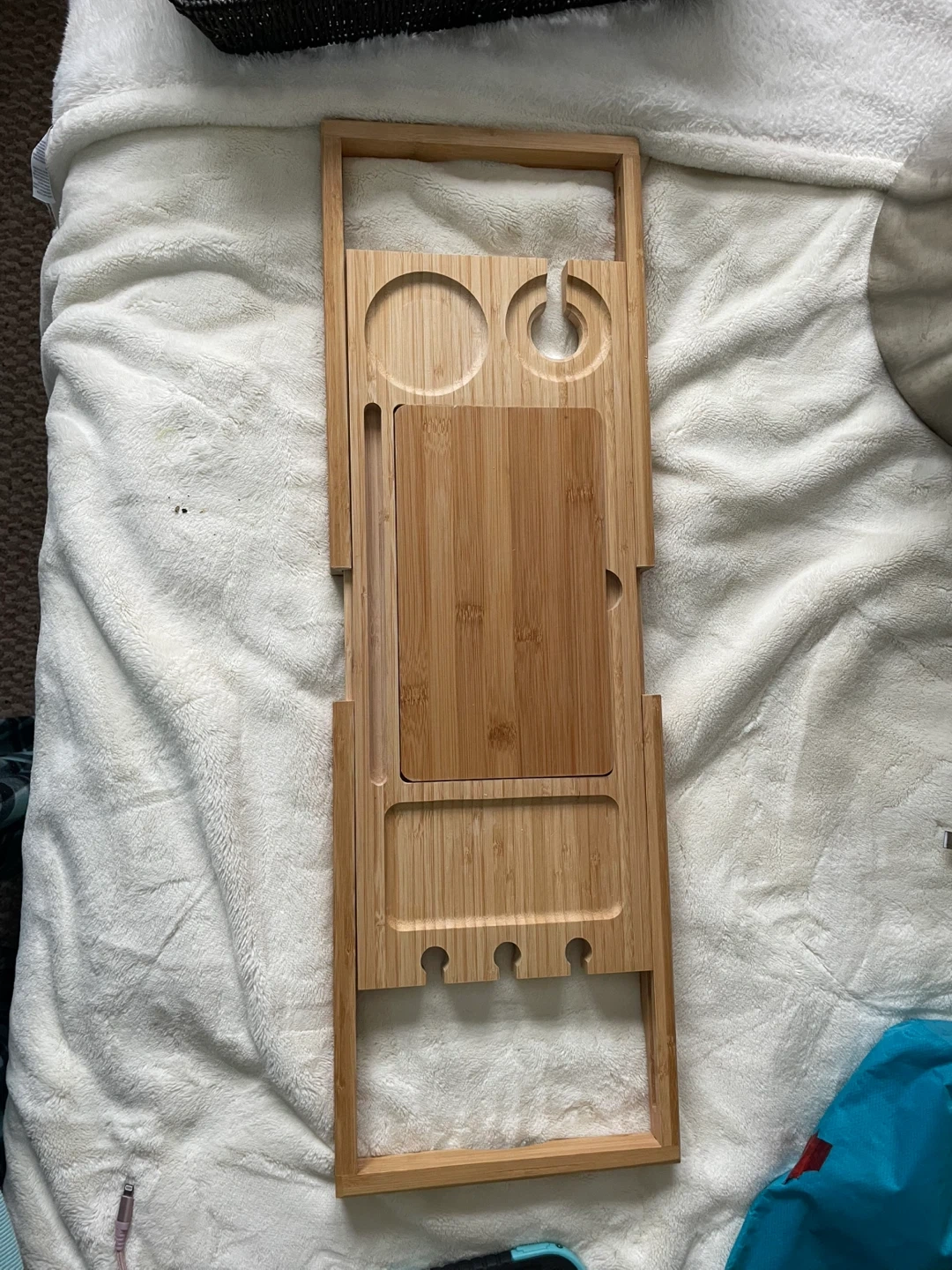 Selling a bamboo bathtub caddy tray. It's perfect for holding your book, phone, or a drink while you relax in the tub! It appears to be in great condition and ready for a new home