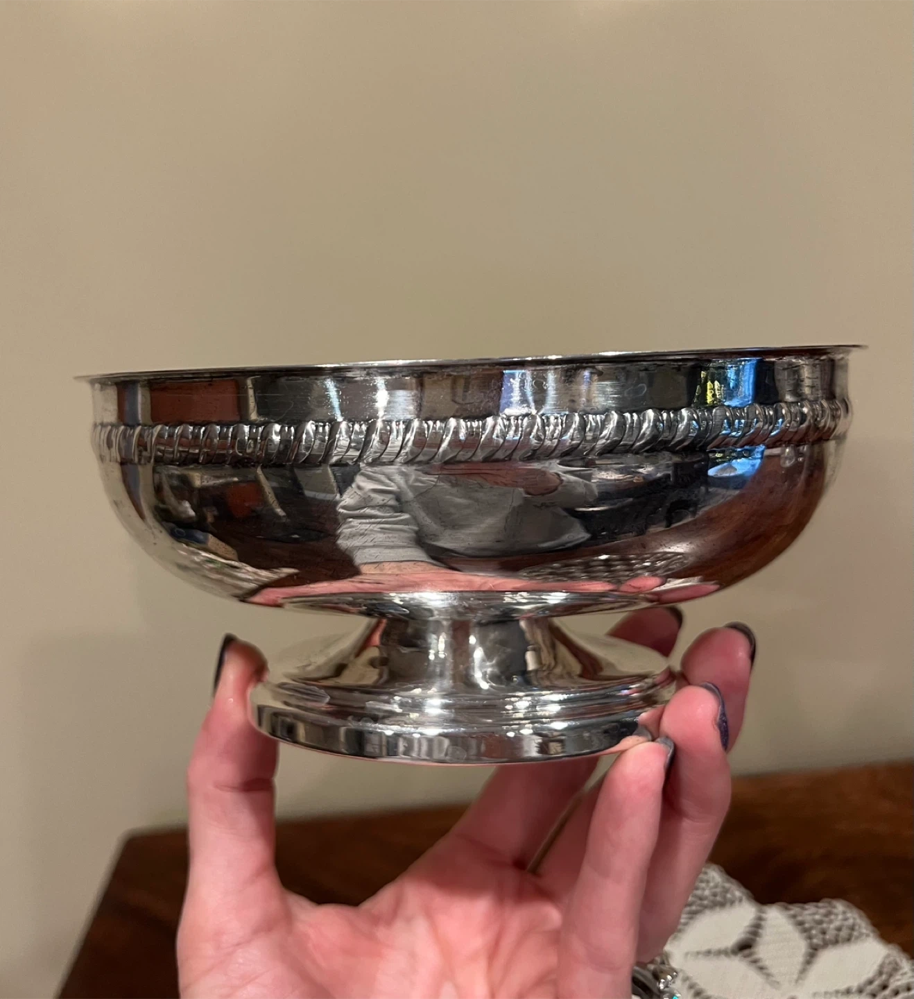 Silverplated oval bowl with clear removable glass insert