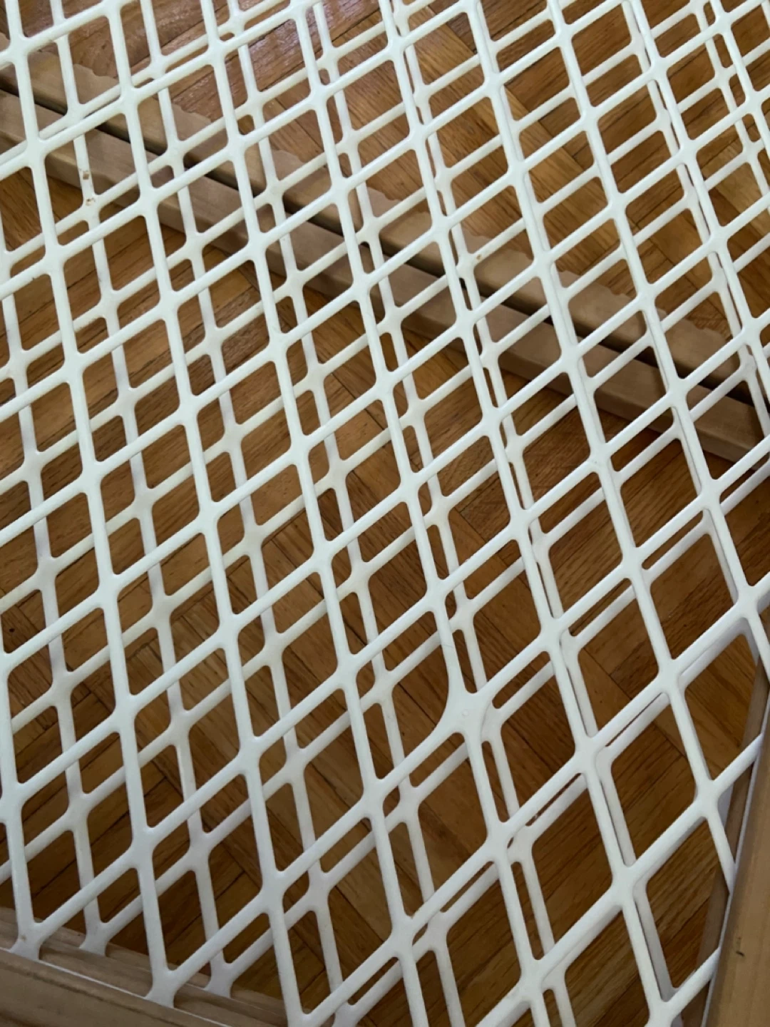 Selling a wooden baby gate. It's in great condition and ready to keep your little one safe! The gate is made of wood with a white plastic mesh.