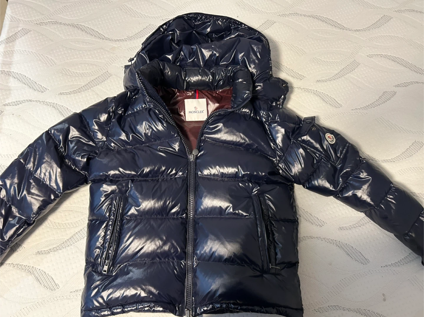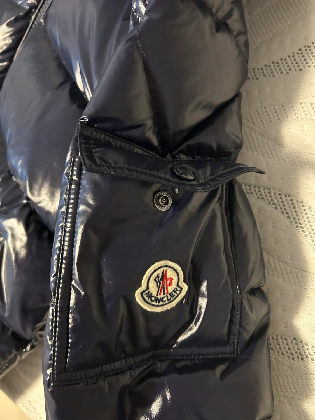 a Moncler puffer jacket! It's a stylish and warm choice for those chilly days. The jacket features the iconic Moncler logo on the sleeve pocket. Brand new never worn.