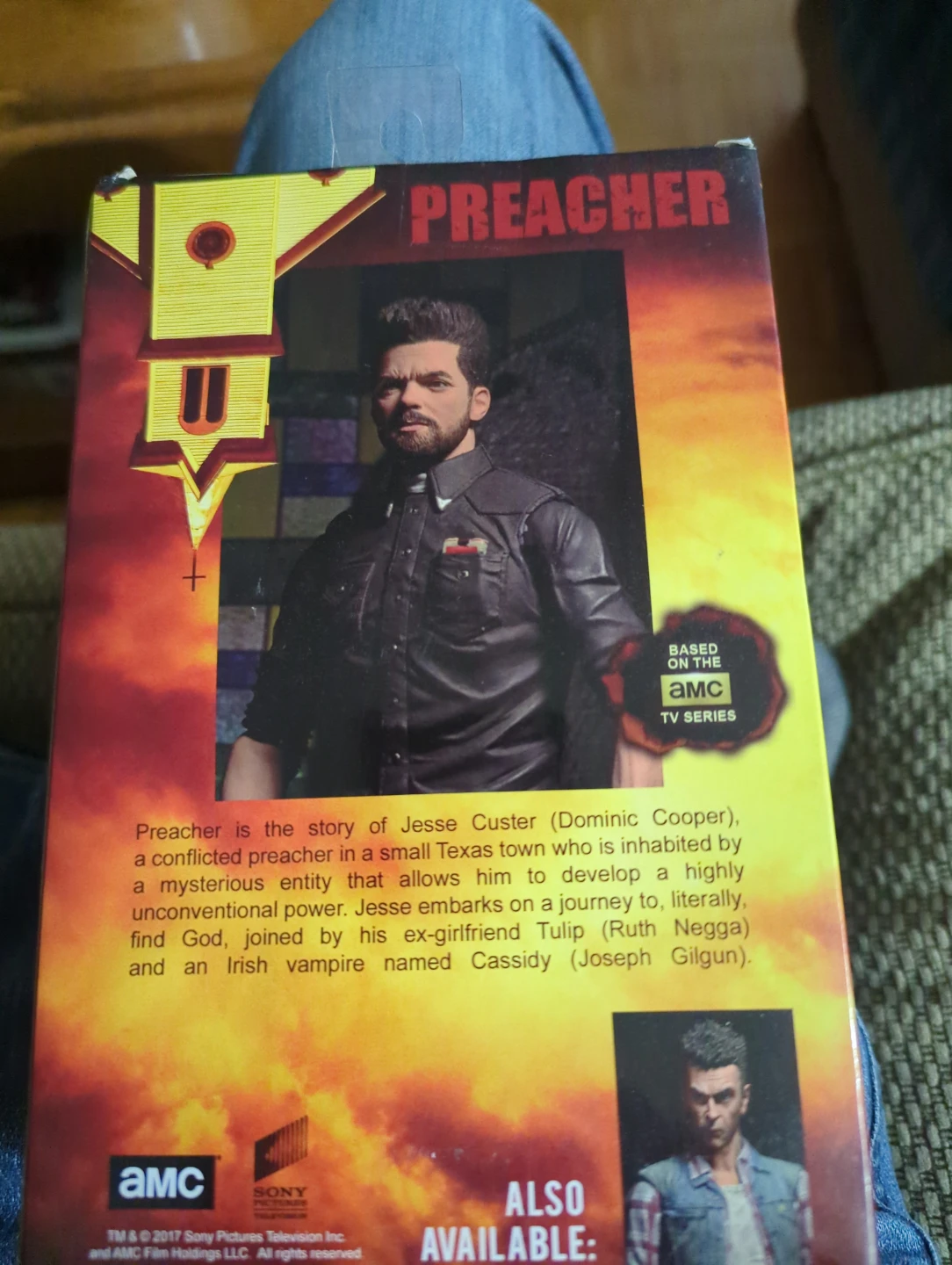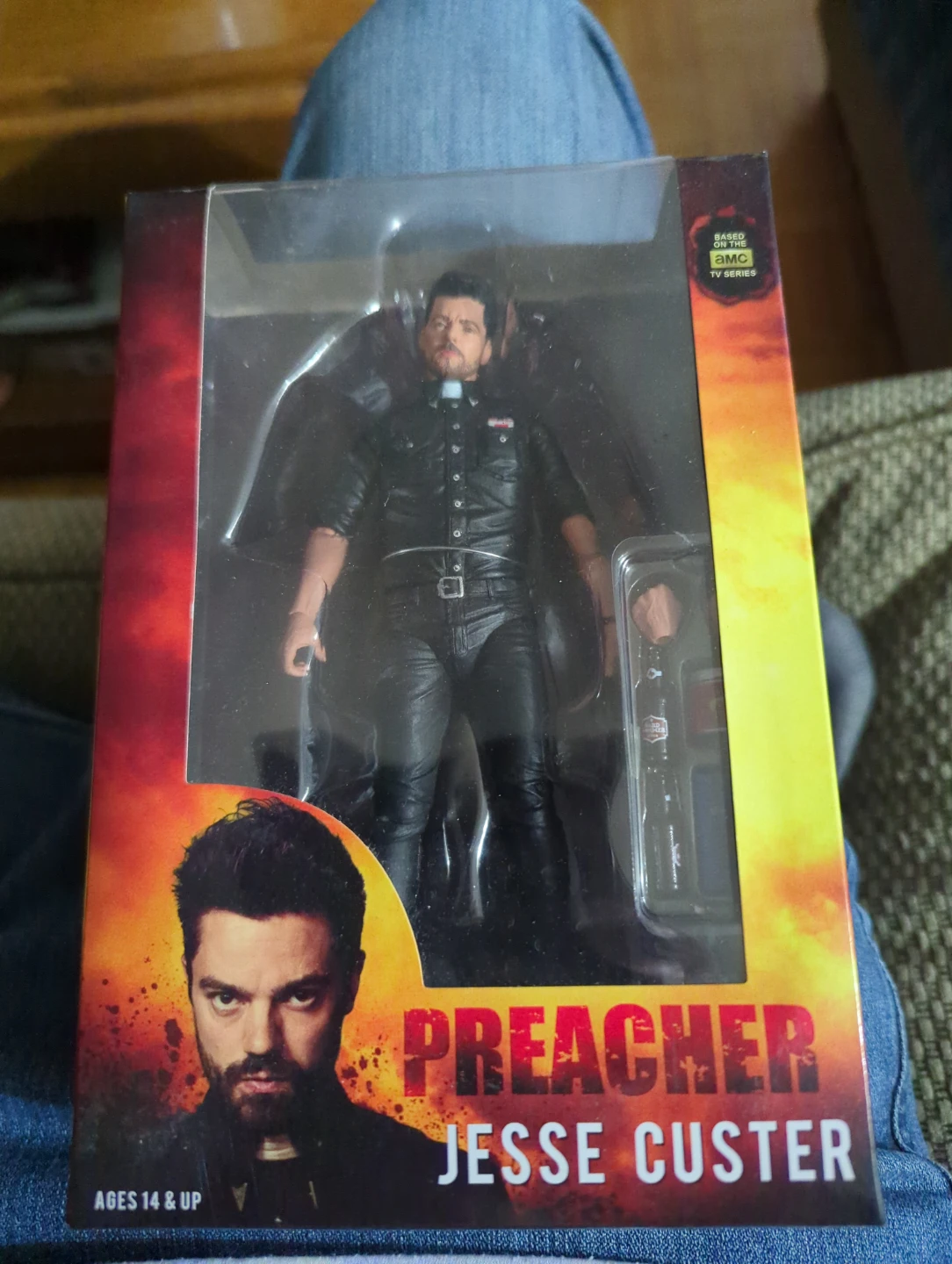Selling a Preacher Jesse Custer action figure, suitable for ages 14 and up! Based on the AMC TV series, this figure is in its original packaging. Perfect for fans of the show!Slight damage at top corner.