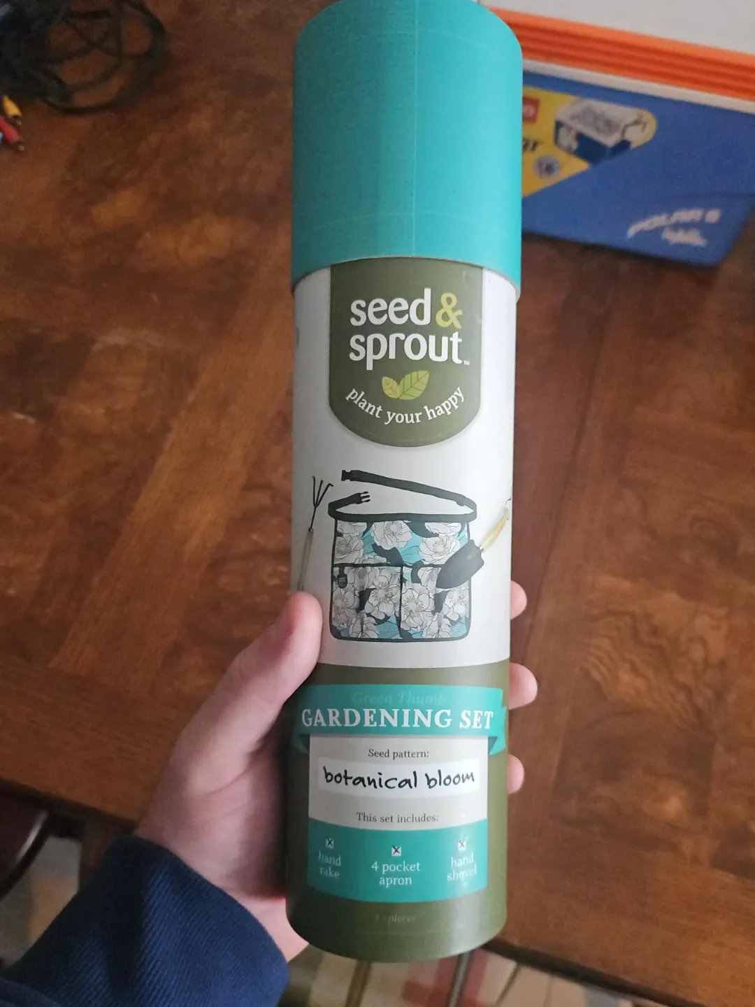 Get your green thumb on with this Seed & Sprout gardening set! It features the botanical bloom seed pattern and includes a hand rake, a 4-pocket apron, and a hand shovel. Perfect for starting your own little garden