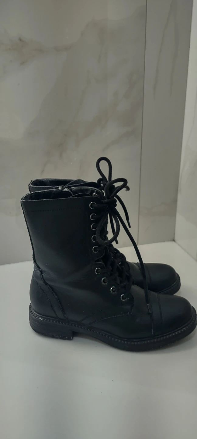 Selling a pair of black lace-up combat boots. They're in good condition and ready for a new adventure!