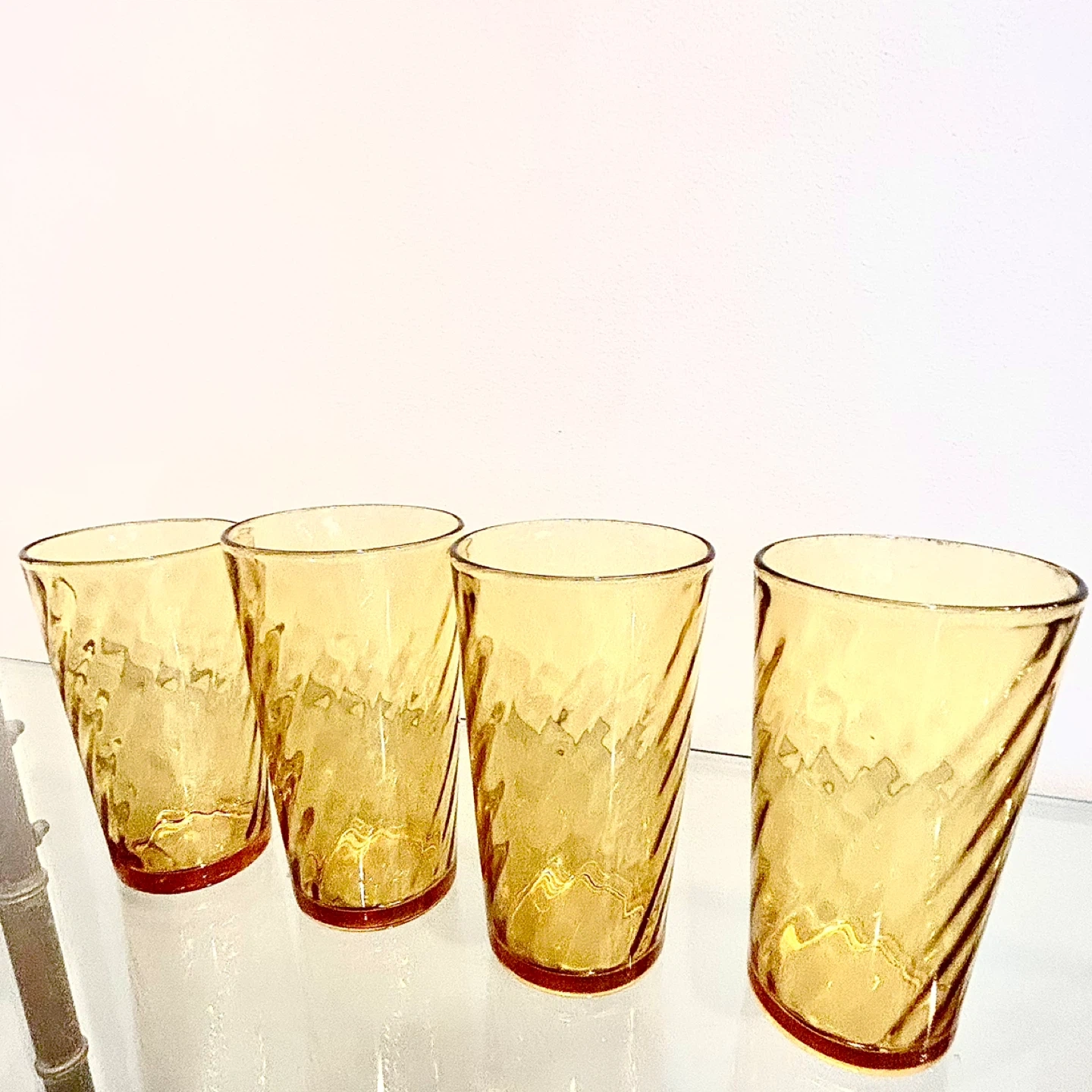Vintage Amber Swirl Tumblers (Set of 4) Mid-Century Art Glass