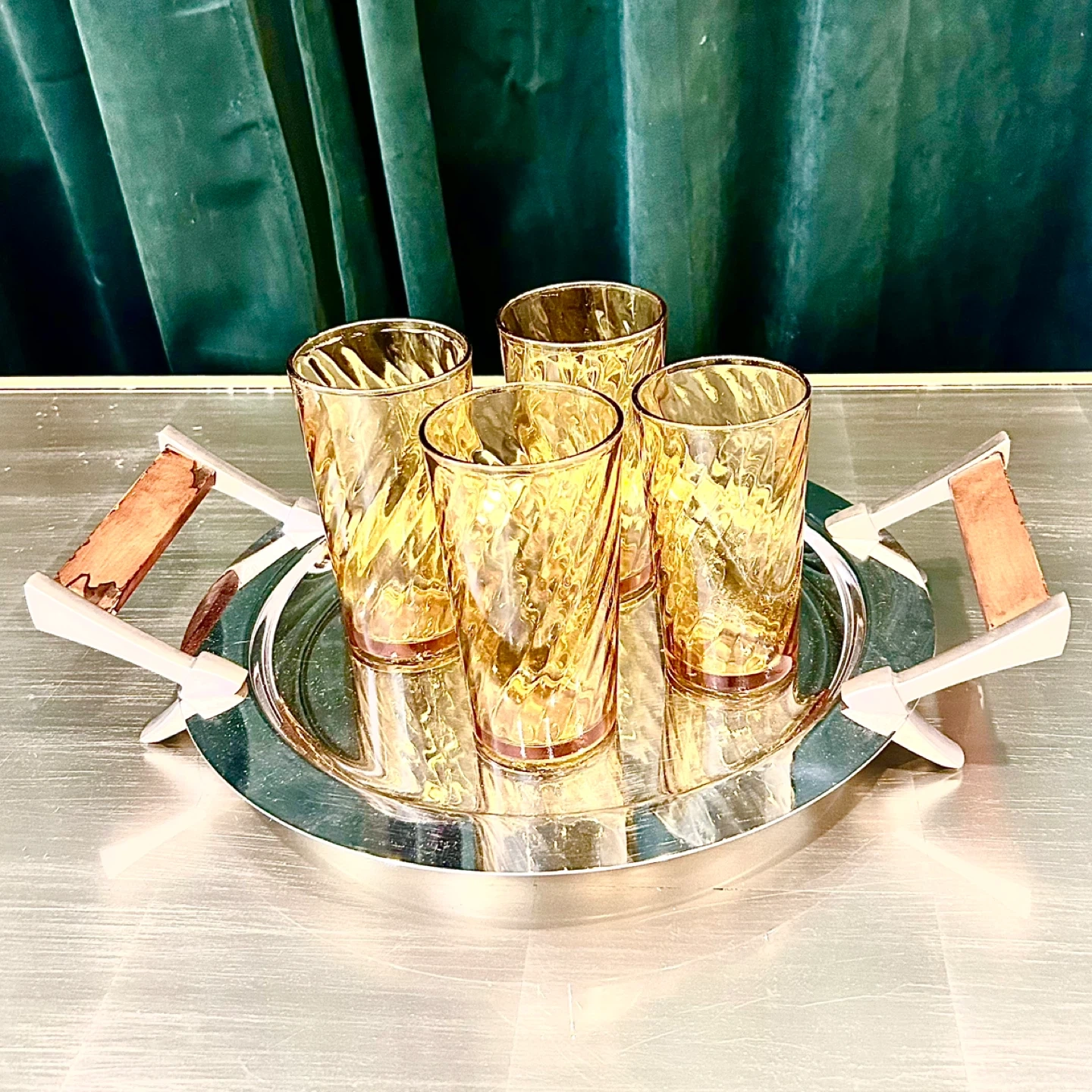 mid century modern, MCM barware, amber glass, honey glass, twist optic, swirl tumbler, vintage tumblers, retro drinkware, art glass style