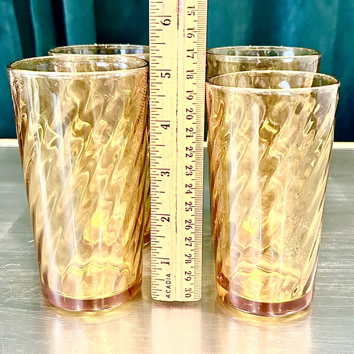 Perfect for a MCM bar cart, retro kitchen display, or as collection filler for amber glass and twist optic barware. Also excellent as mixed cocktails, water, or juice tumblers.