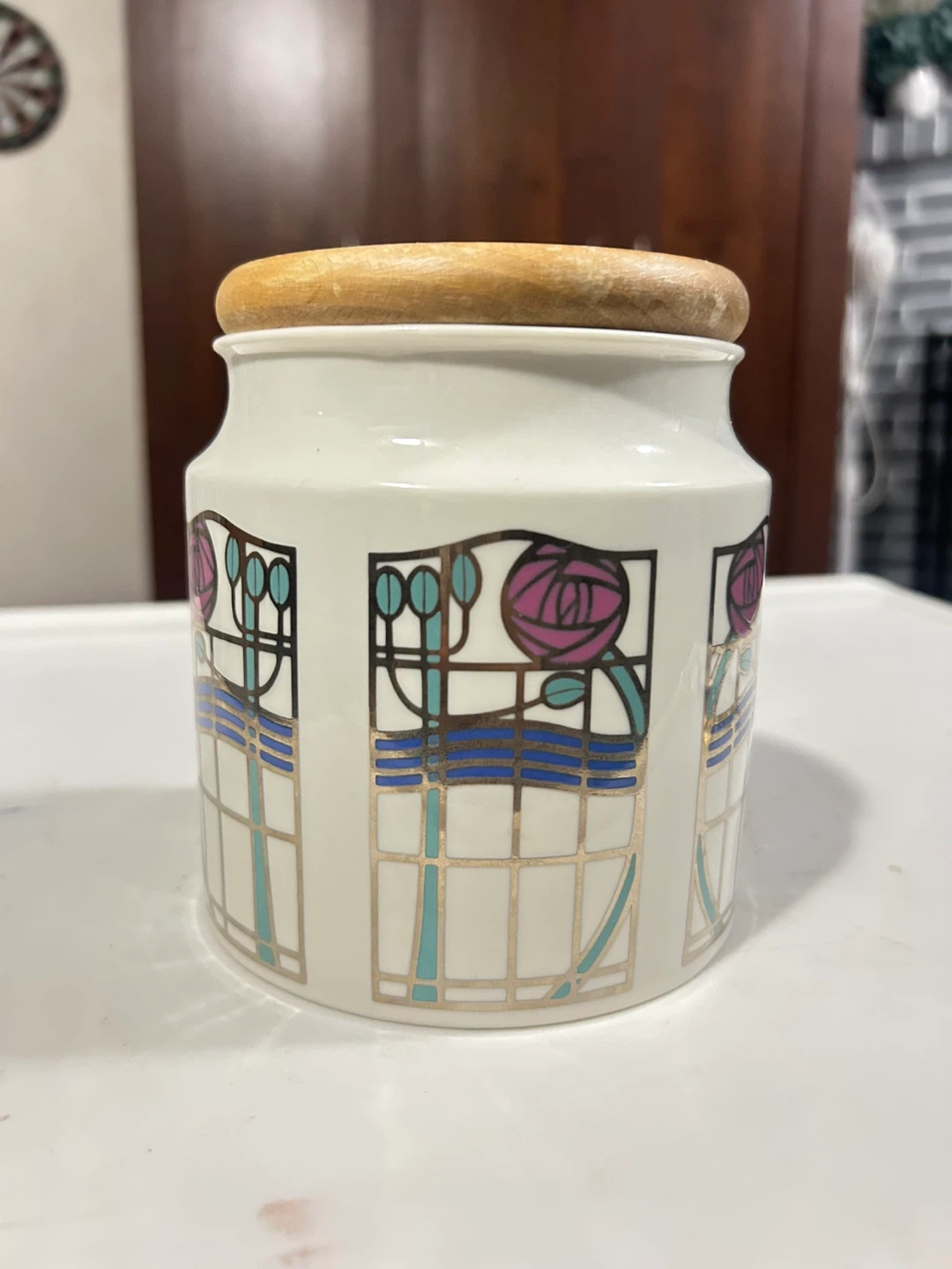 Selling a cute ceramic jar with a wooden lid! It's in great shape and perfect for storing small items or adding a decorative touch to your kitchen or home