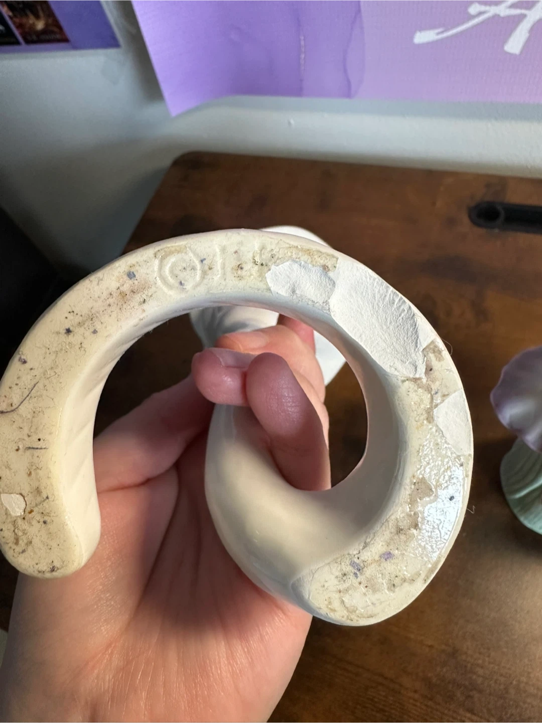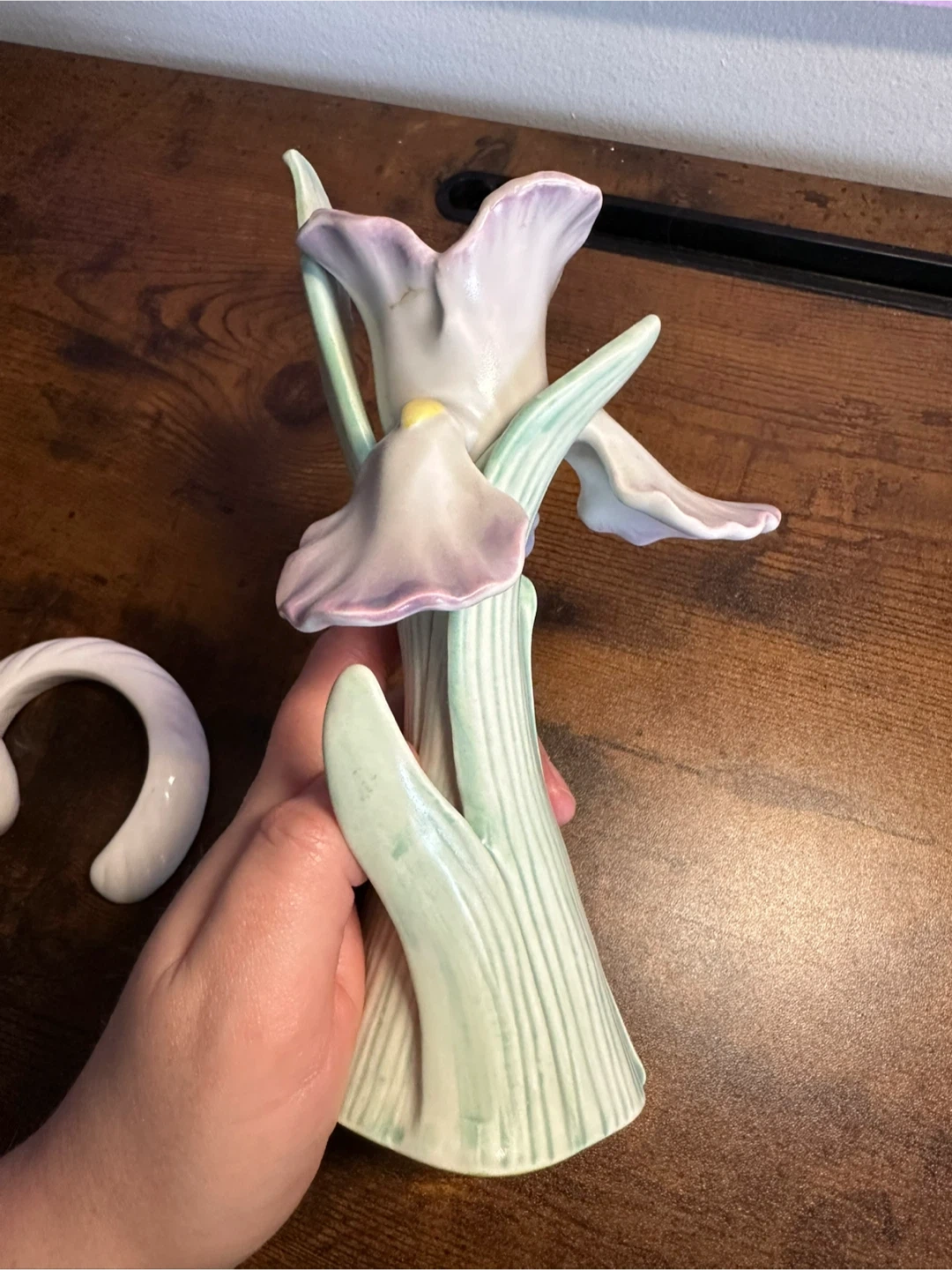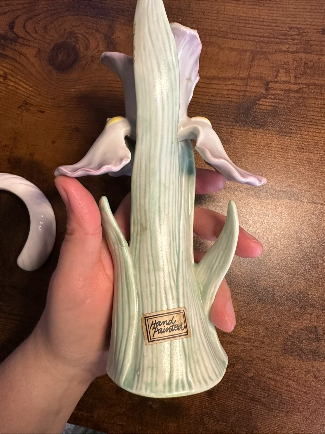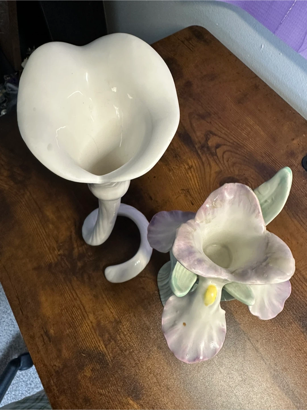 Set of vintage candle holders. One is hand painted. The other is pure white, but has a small chip on the bottom which is unnoticeable when standing upright.