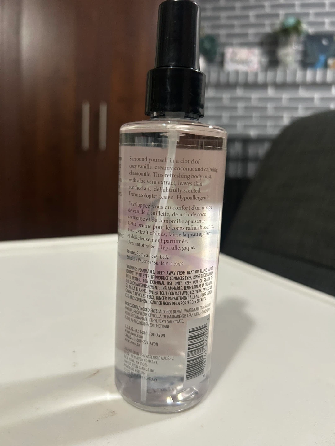 Treat yourself to a cloud of cozy vanilla, creamy coconut, and calming chamomile with this Avon Senses body mist! It's dermatologist-tested and hypoallergenic, perfect for all-over body use. The bottle contains 236 ml / 8 fl oz