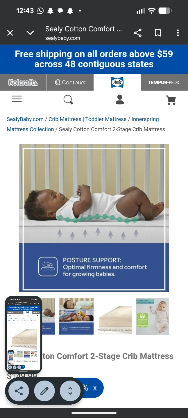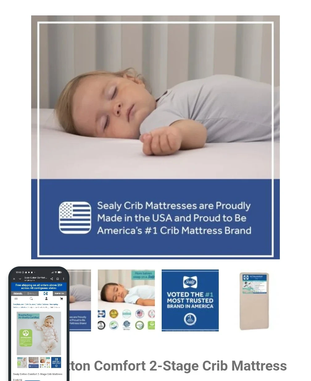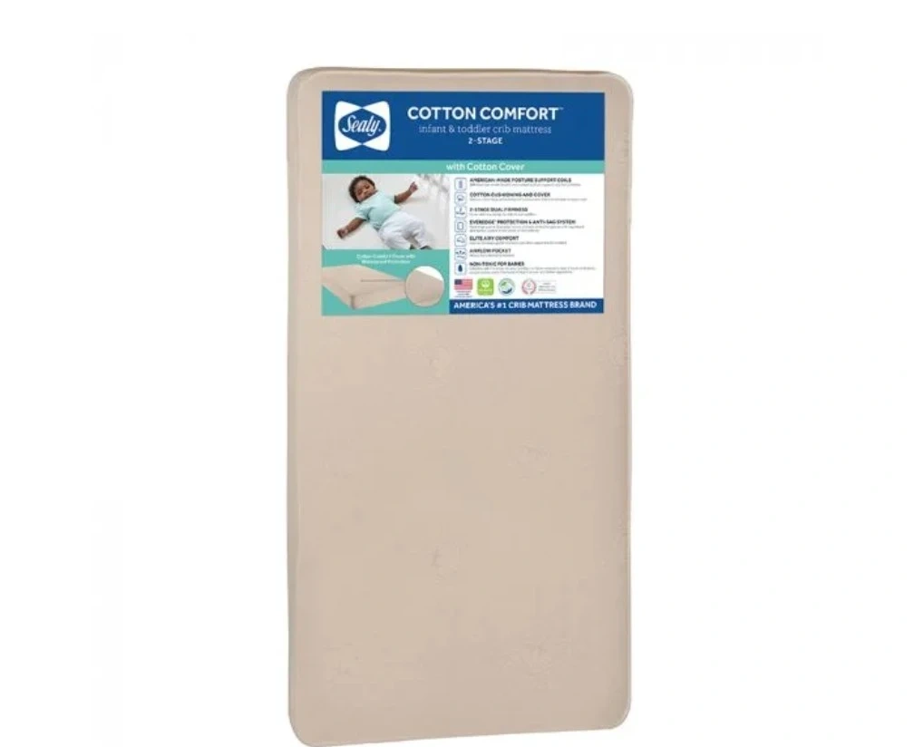 Selling a Sealy Cotton Comfort 2-Stage Crib Mattress. It's proudly made in the USA and voted the #1 most trusted brand in America. This mattress offers optimal firmness and comfort for growing babies, with posture support. It also features a waterproof surface and binding, and is air quality certified