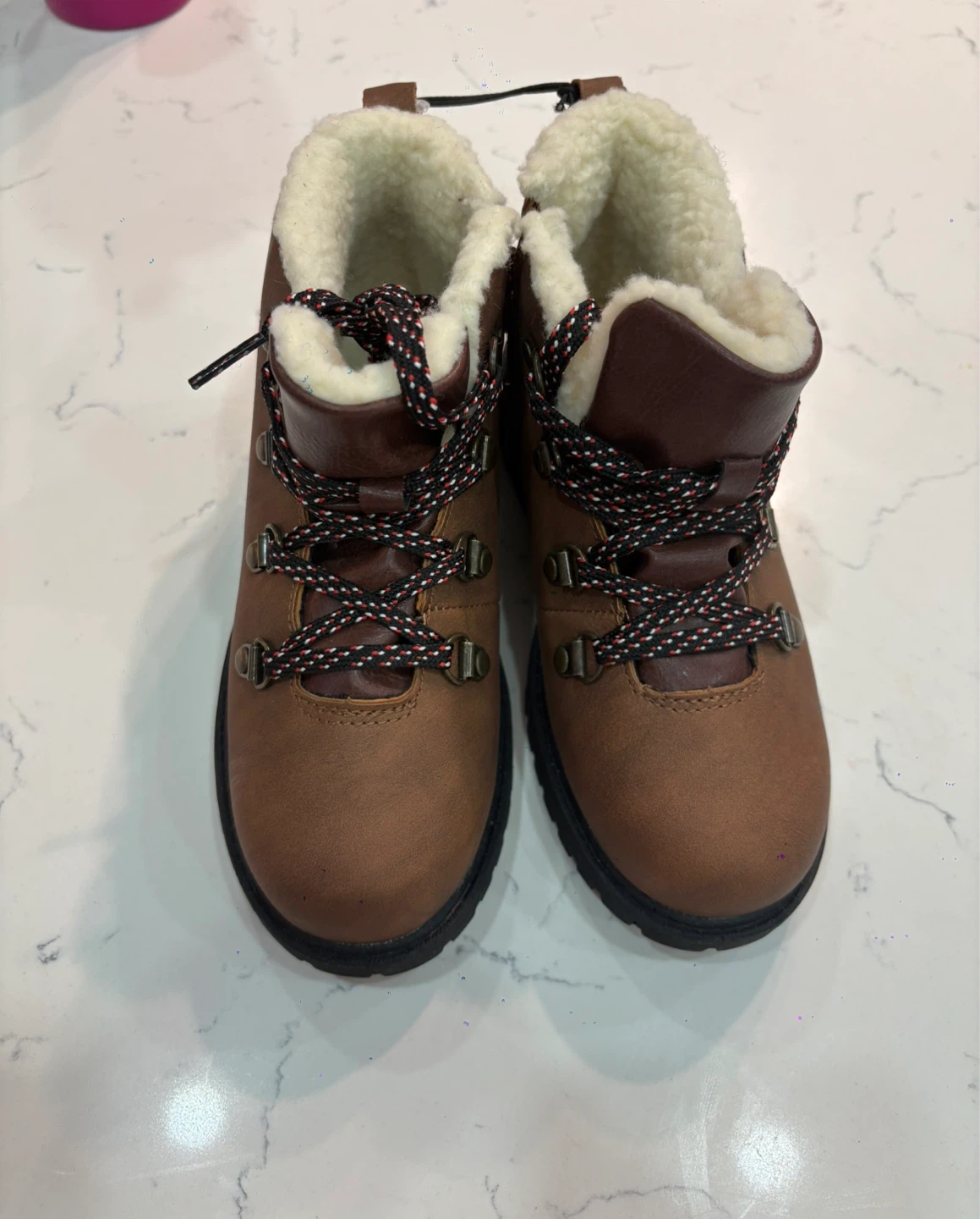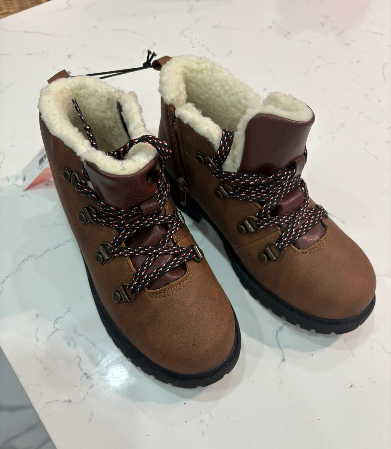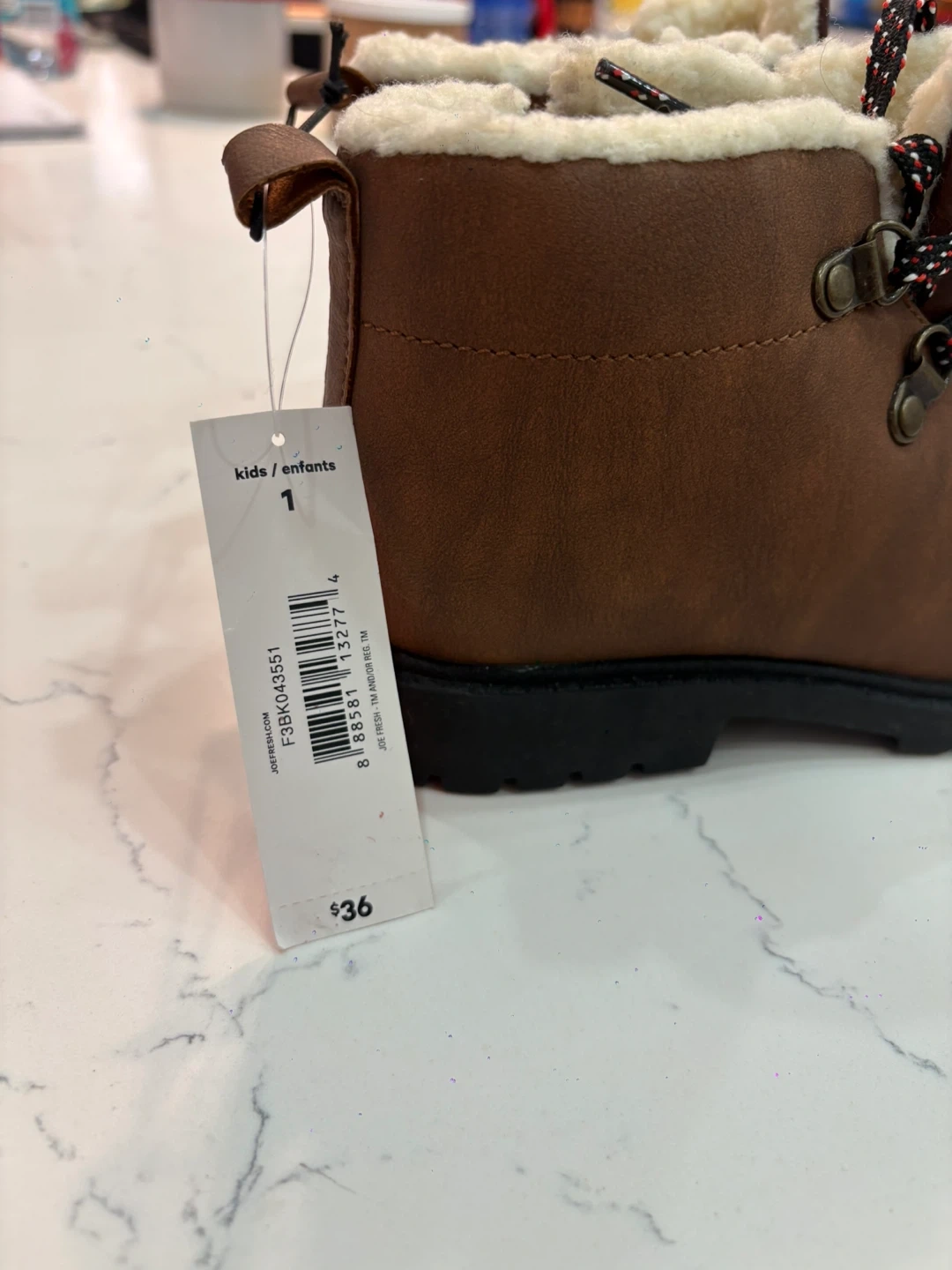 These Joe Fresh kids' winter boots are brand new with tags! They are a brown colour with a cozy faux-fur lining. Perfect for keeping little feet warm and dry this winter. Size 1 (kids). Originally bought for $36