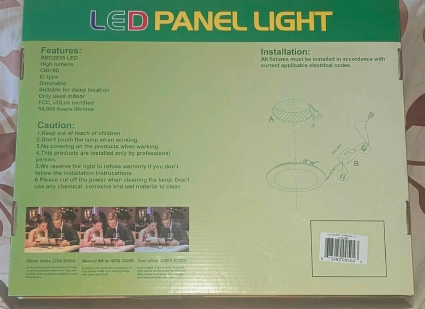 Selling an LED panel light by itwumnex! It features SMD2835 LEDs, high lumens, and a CRI>80. It's dimmable and suitable for damp locations. The item is FCC and cULus certified and has a 50,000 hours lifetime