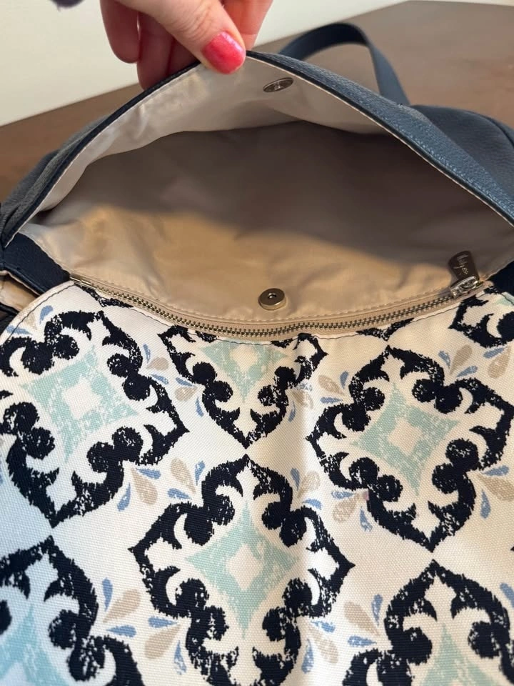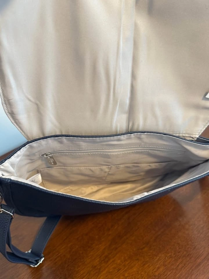 Strap: Midnight Navy Pebble- adjustable for shoulder or crossbody.