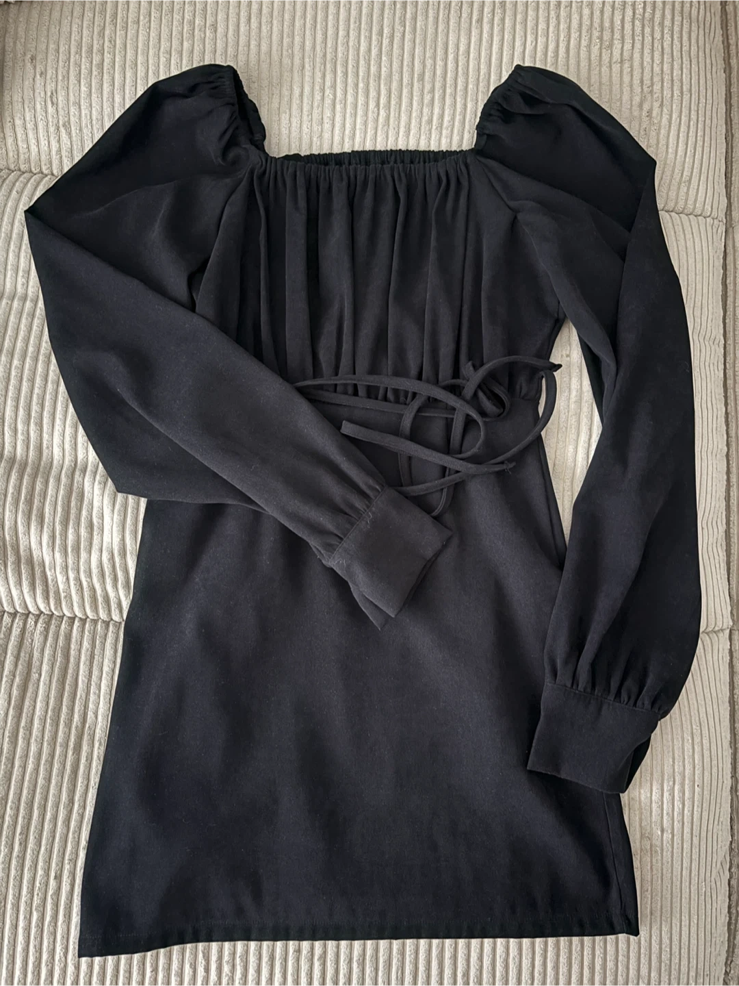Square neckline / Off-shoulder / Tie at the waist
