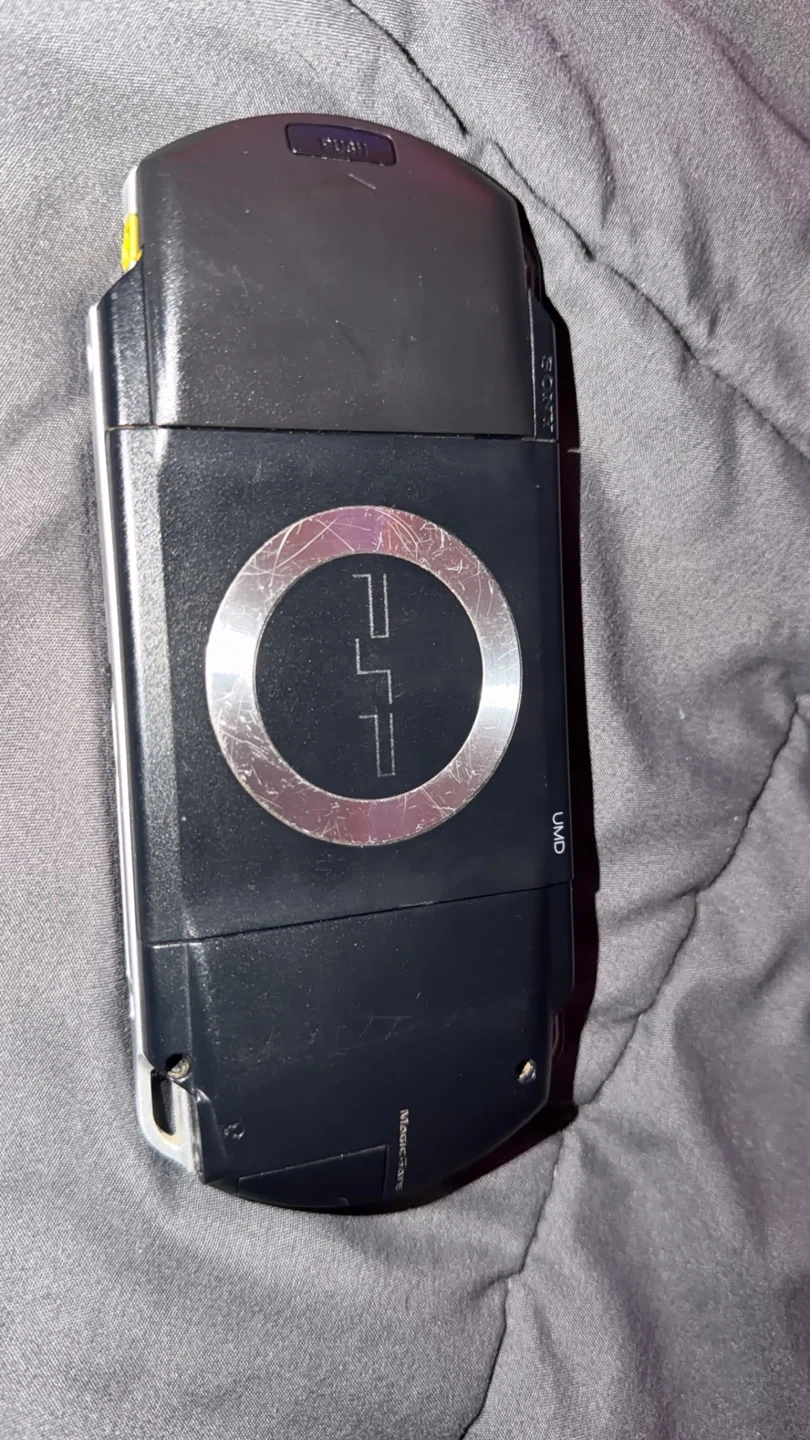 Selling a used Sony PSP handheld console. It shows some signs of wear, including scratches on the back. The system software is version 6.60 GENVA (Full).
