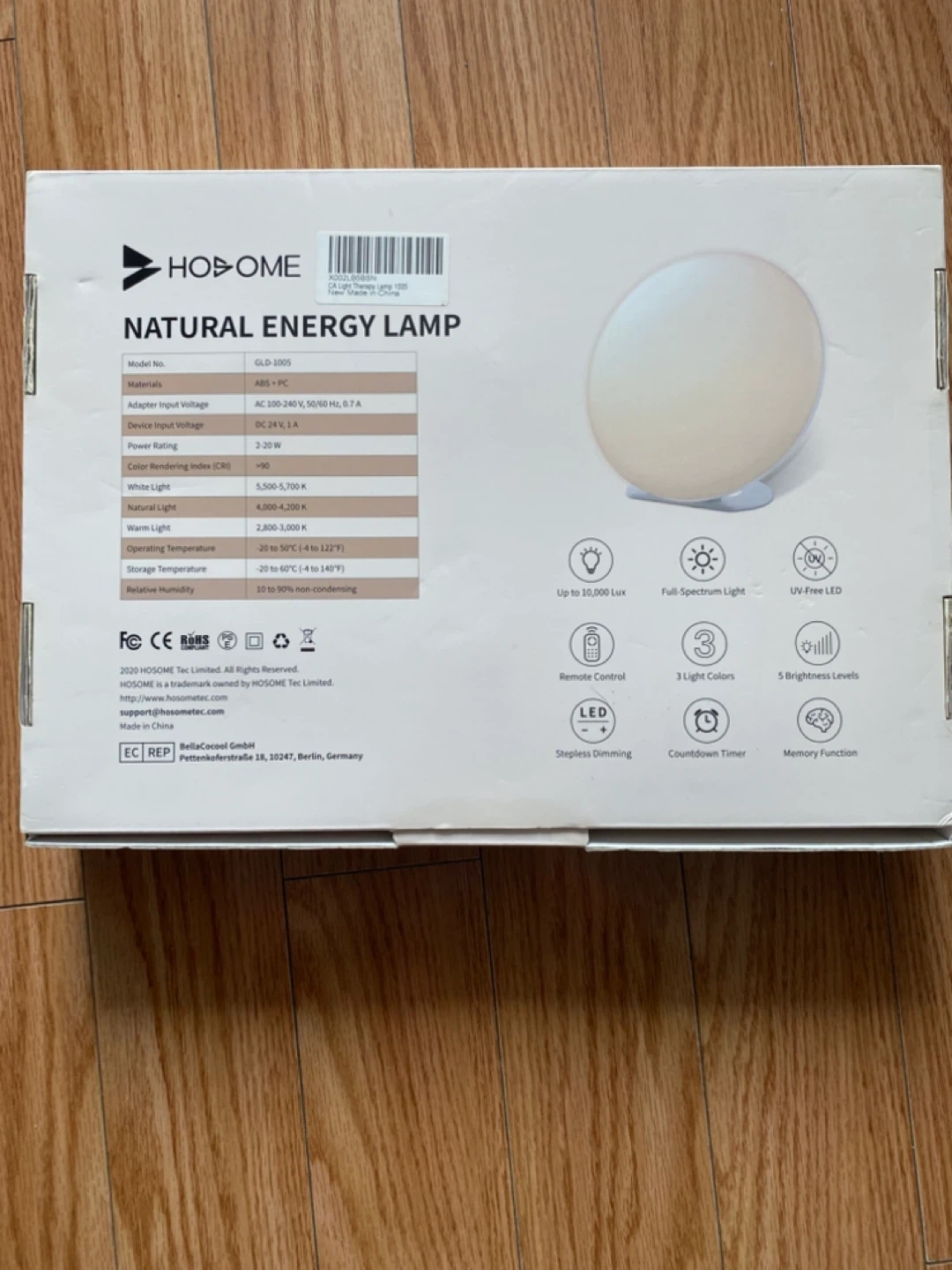 Selling a Hosome Natural Energy Lamp, model GLD-1005. It's brand new comes with the original box and all components.