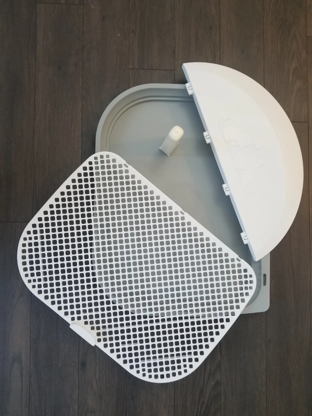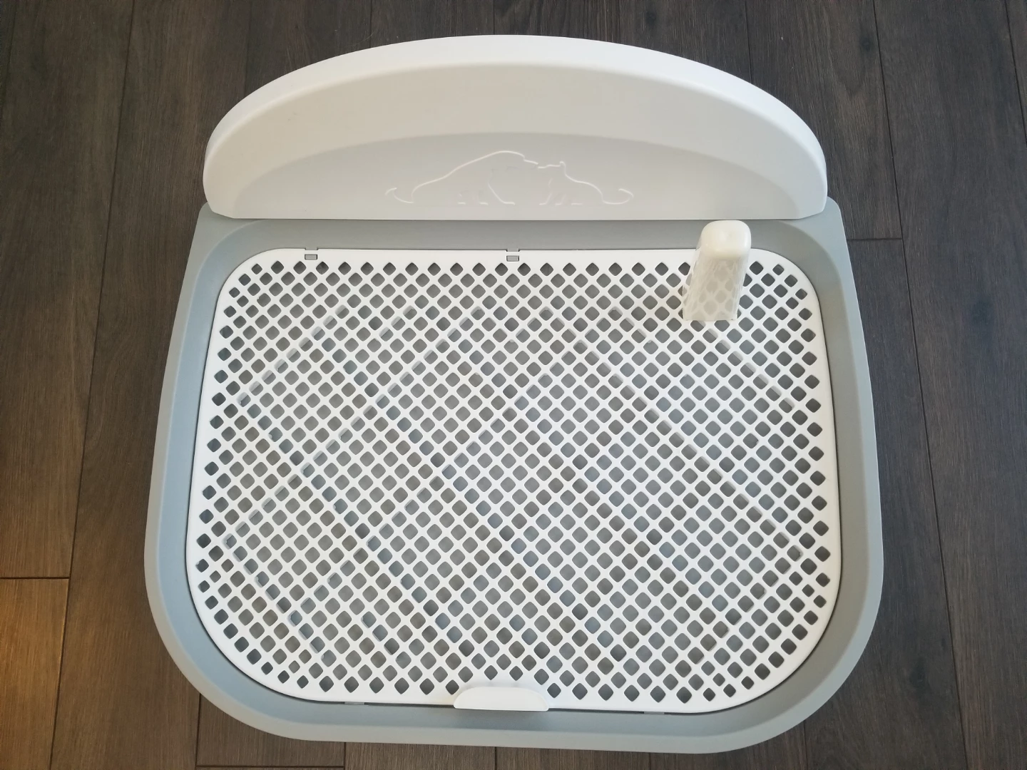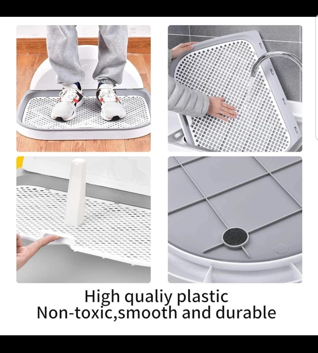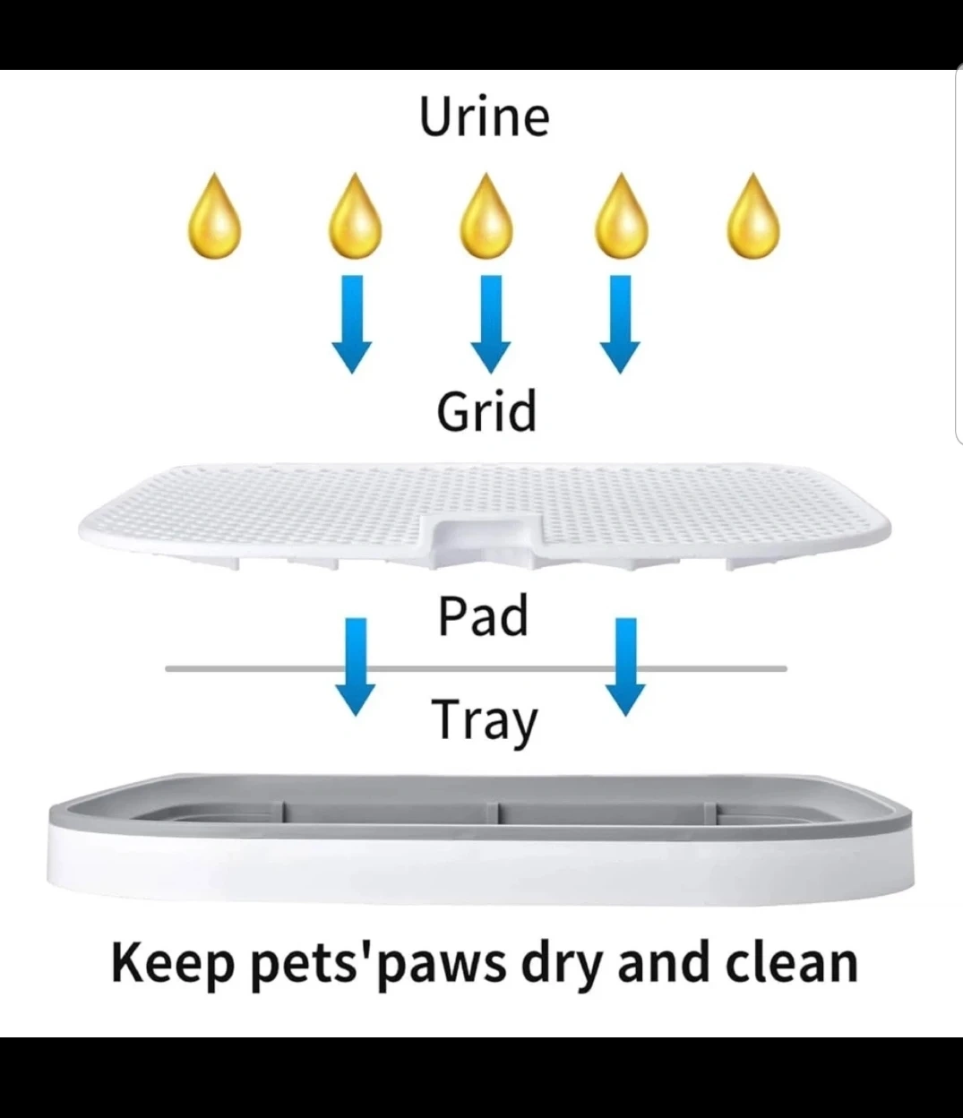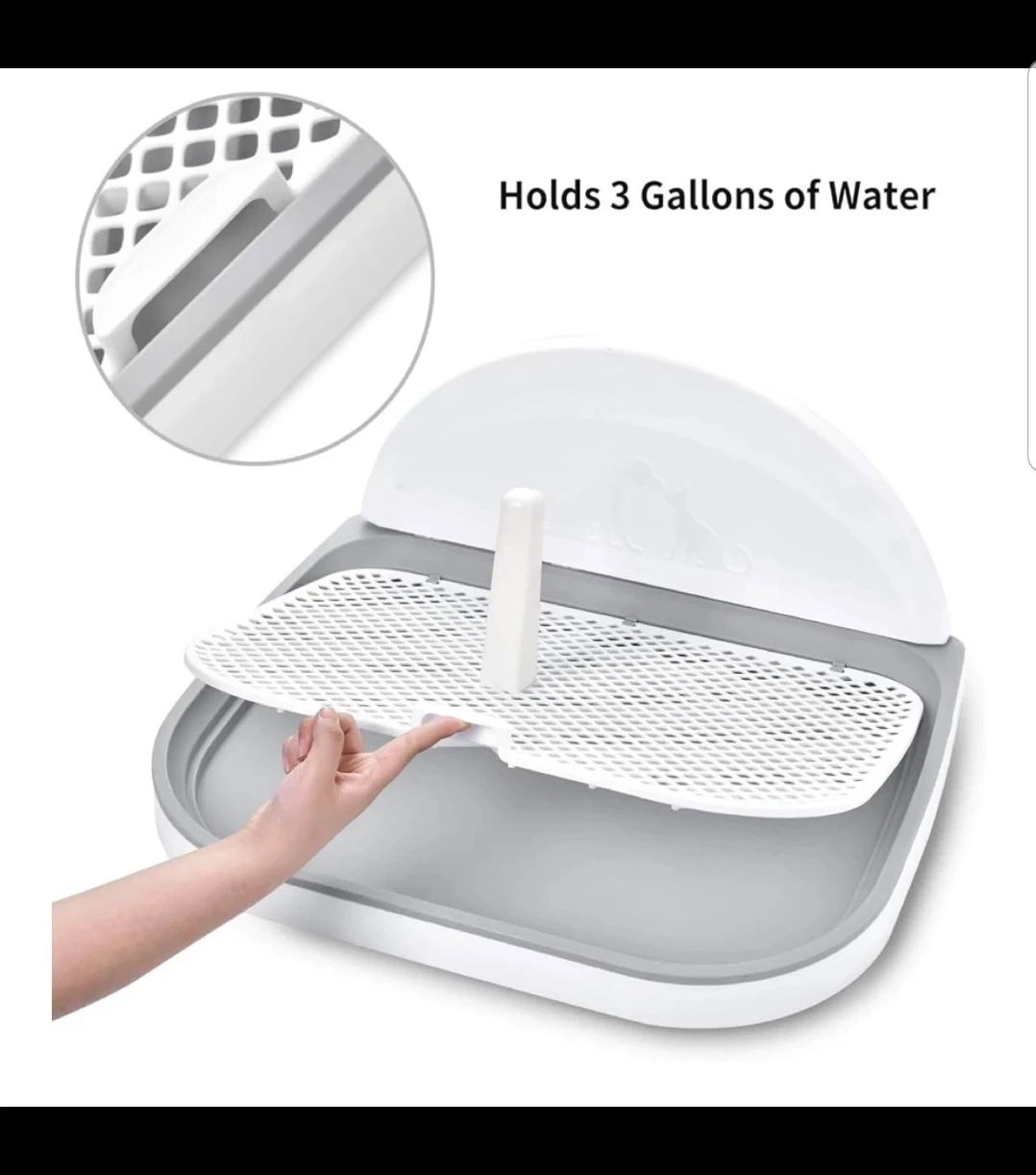 Keep your furry friend comfortable with this potty training pad! It includes a tray and grid system to keep pets' paws dry and clean. It holds up to 3 gallons of water. Dimensions are 23.2" x 17.9"