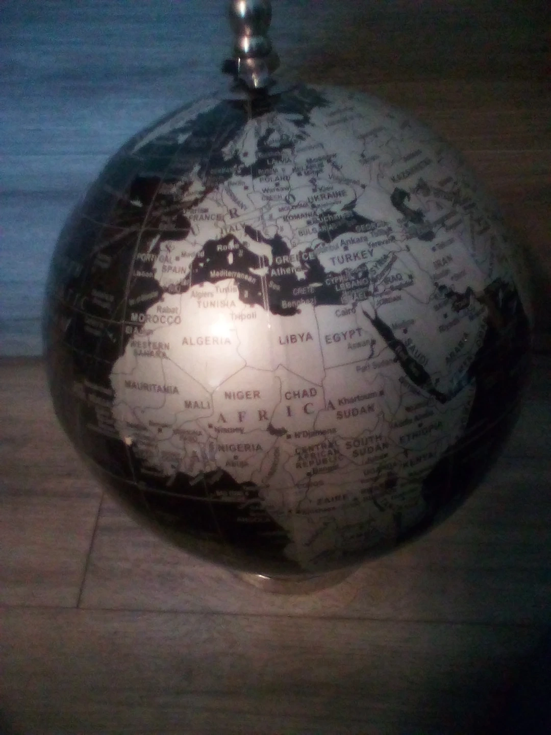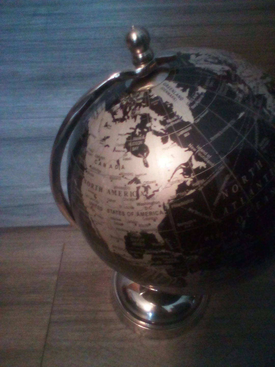 Here's a decorative globe that would look great in any room! It measures about 6 inches in diameter, as shown in the pictures. It's in good condition and ready to be displayed. $25.00 o.b.o
