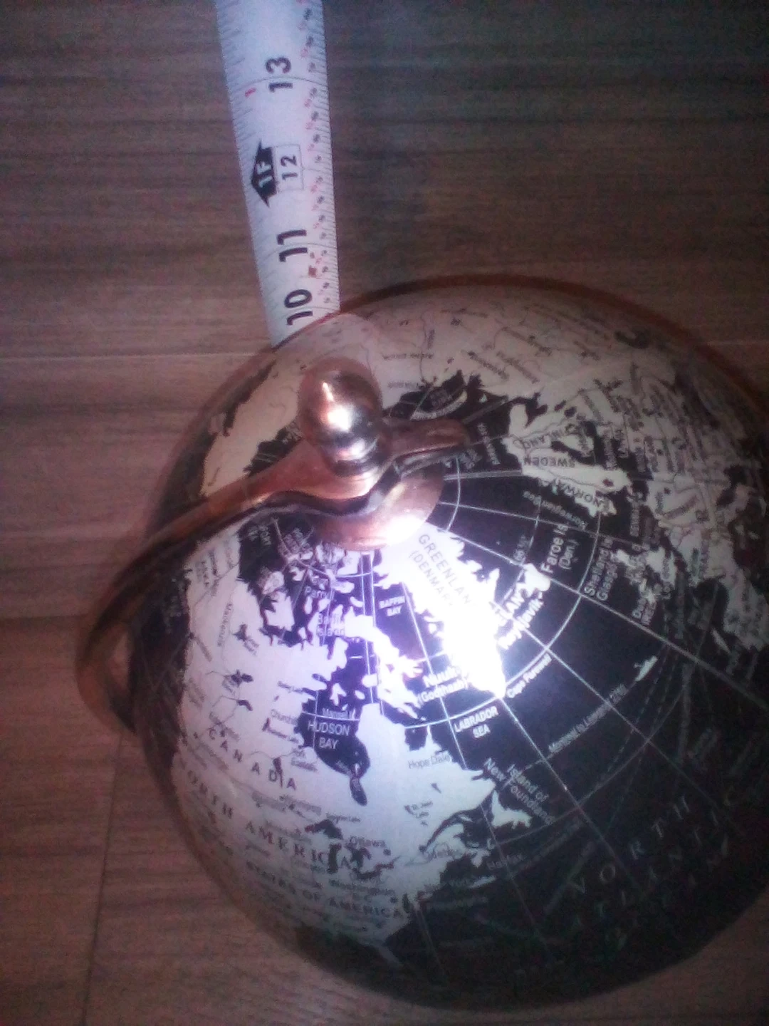 Here's a decorative globe that would look great in any room! It measures about 6 inches in diameter, as shown in the pictures. It's in good condition and ready to be displayed. $25.00 o.b.o