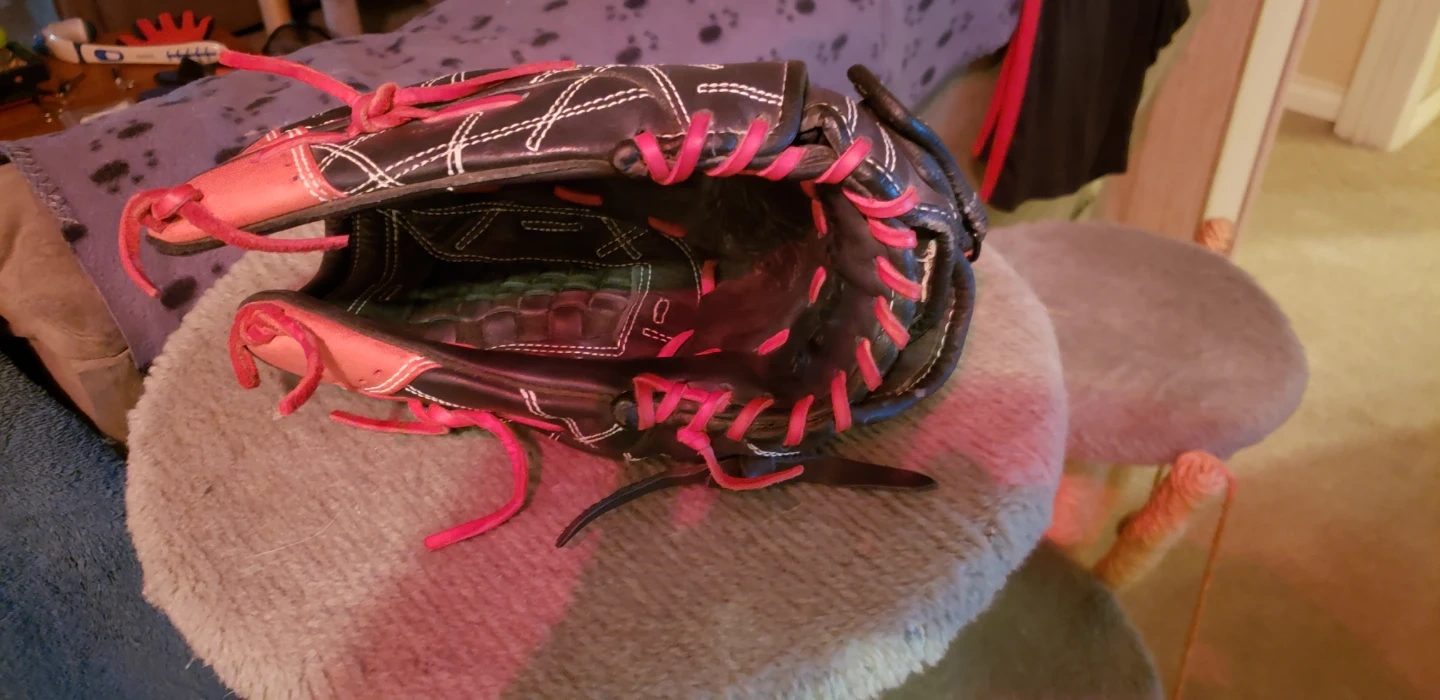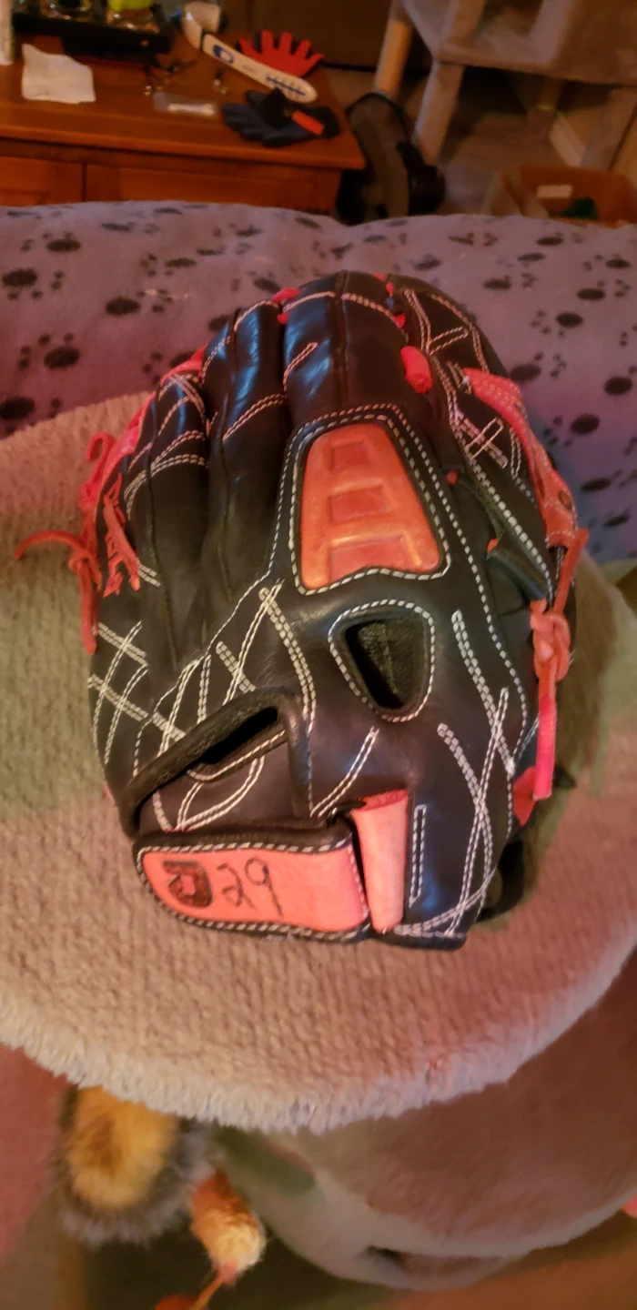 Selling a Dearing Diablo softball glove in black with red accents! It's in good condition and ready for a new player. Perfect for practice or games A0725 CCDB14 left hand.