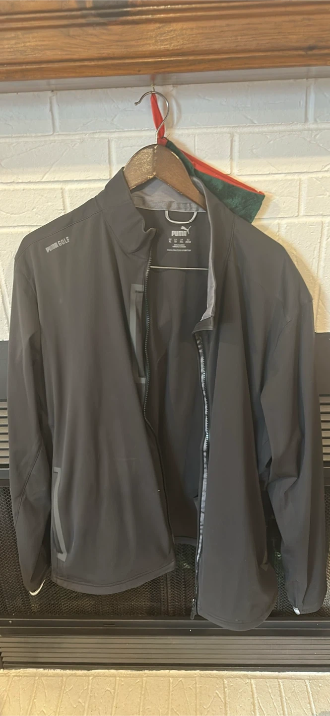 Selling a Puma Golf jacket in black. It's in great condition and perfect for a round of golf or just a casual outing!