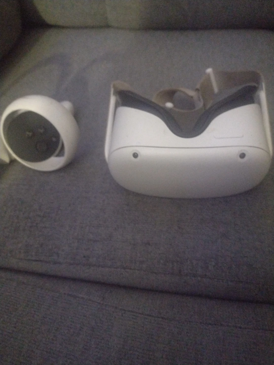 Selling an Oculus Quest 2 VR headset. It's in great condition and ready for a new owner! It includes the controllers as seen in the picture. Works good