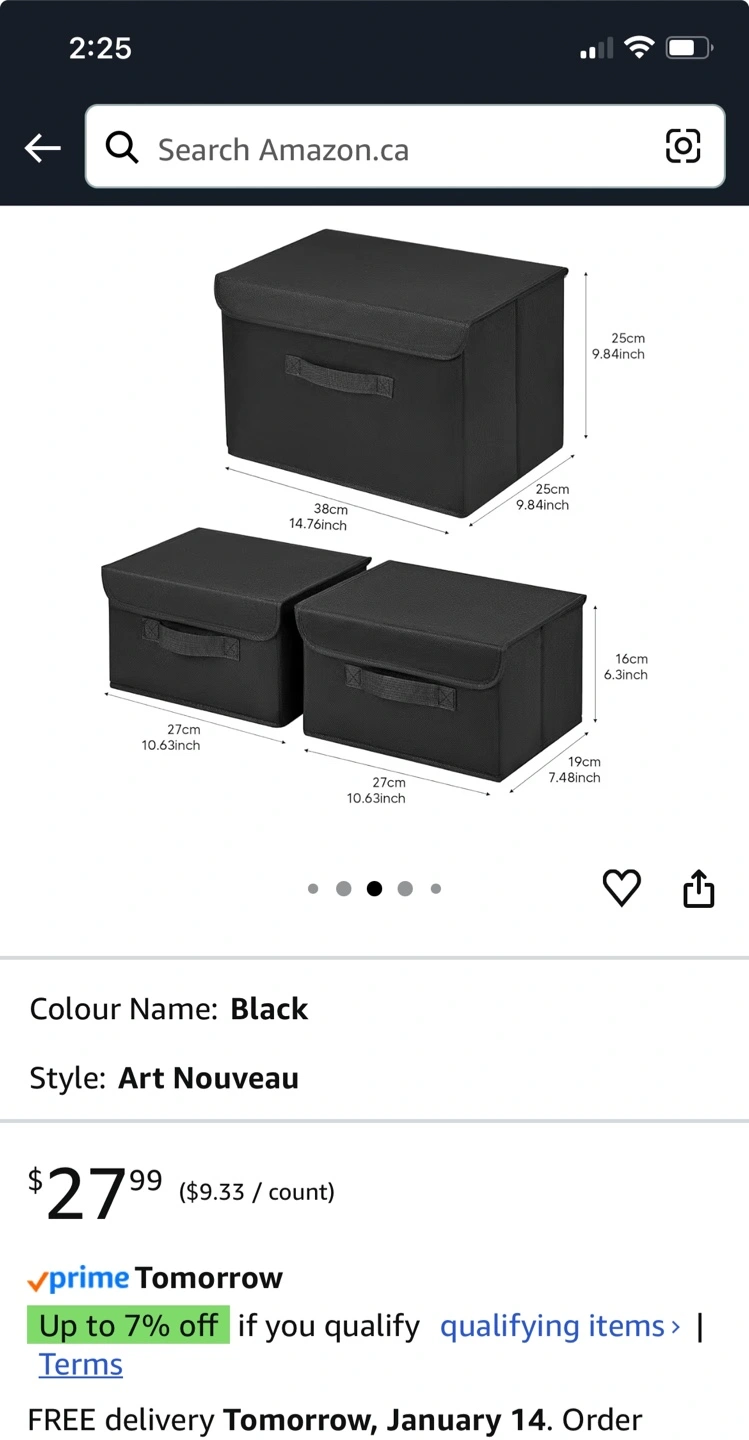 These Art Nouveau storage boxes are great for organizing your space! They come in a sleek black colour.
