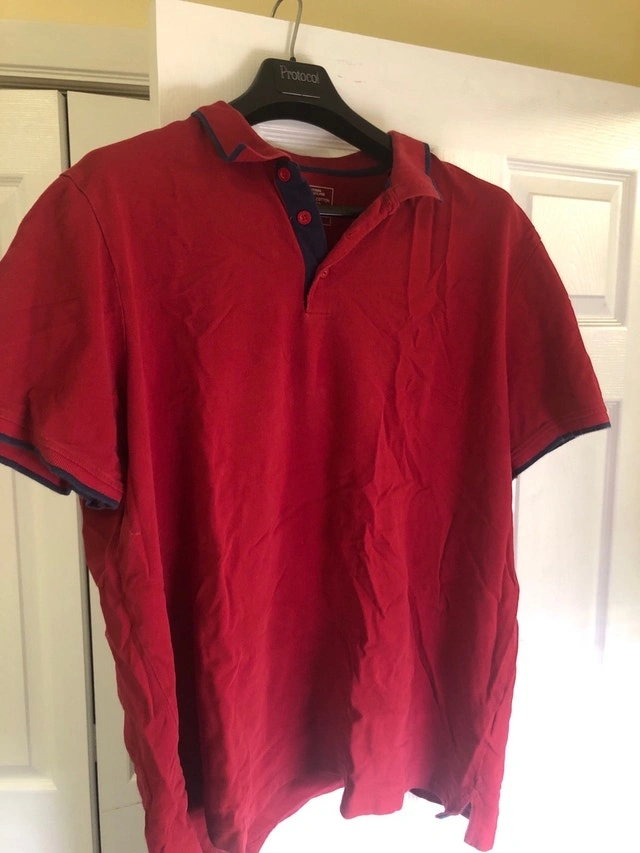 Upgrade your wardrobe with this gently worn Mountain Warehouse polo shirt, crafted from 100% organic cotton for ultimate comfort and breathability, in size 3XL. The vibrant red colour, accented with navy trim, makes it a versatile addition to your casual wear. Here are some of the polo's features: * Brand: Mountain Warehouse * Size: 3XL * Material: 100% Organic Cotton * Colour: Red with Navy Trim * Condition: Used - Good Add a splash of colour to your wardrobe with this Mountain Warehouse polo. If the ad is up, the polo is still available!