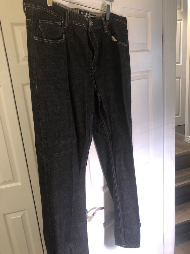 These Ecko Unltd. jeans are a size 40 and made from 100% cotton, perfect for everyday wear. These are used jeans. Here are some details about the jeans: * Brand: Ecko Unltd. * Size: 40 * Material: 100% Cotton I estimate these jeans are worth $30 based on similar listings on Kijiji. That's a steal for a stylish and comfortable pair of jeans! If the ad is up, they are available!
