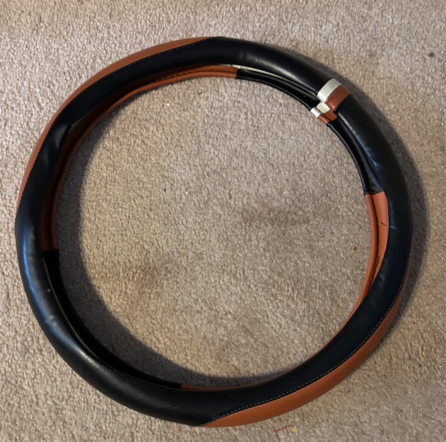 Selling a steering wheel cover in brown and black. It's in great condition and ready to add a touch of style to your ride!