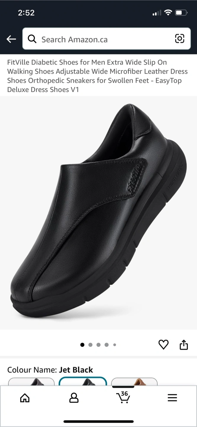 Looking to sell a pair of FitVille Diabetic Shoes in Jet Black, size 9 Wide. These shoes are designed for comfort and support, featuring a shock-absorbing sole and removable insoles. They're great for conditions like diabetes, arthritis, neuropathy, bunions, and flat feet. The shoes have an extended toe room and a non-slip rubber outsole for added safety and convenience