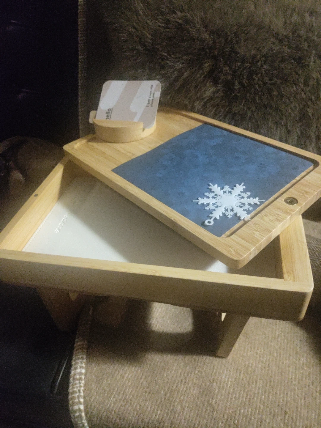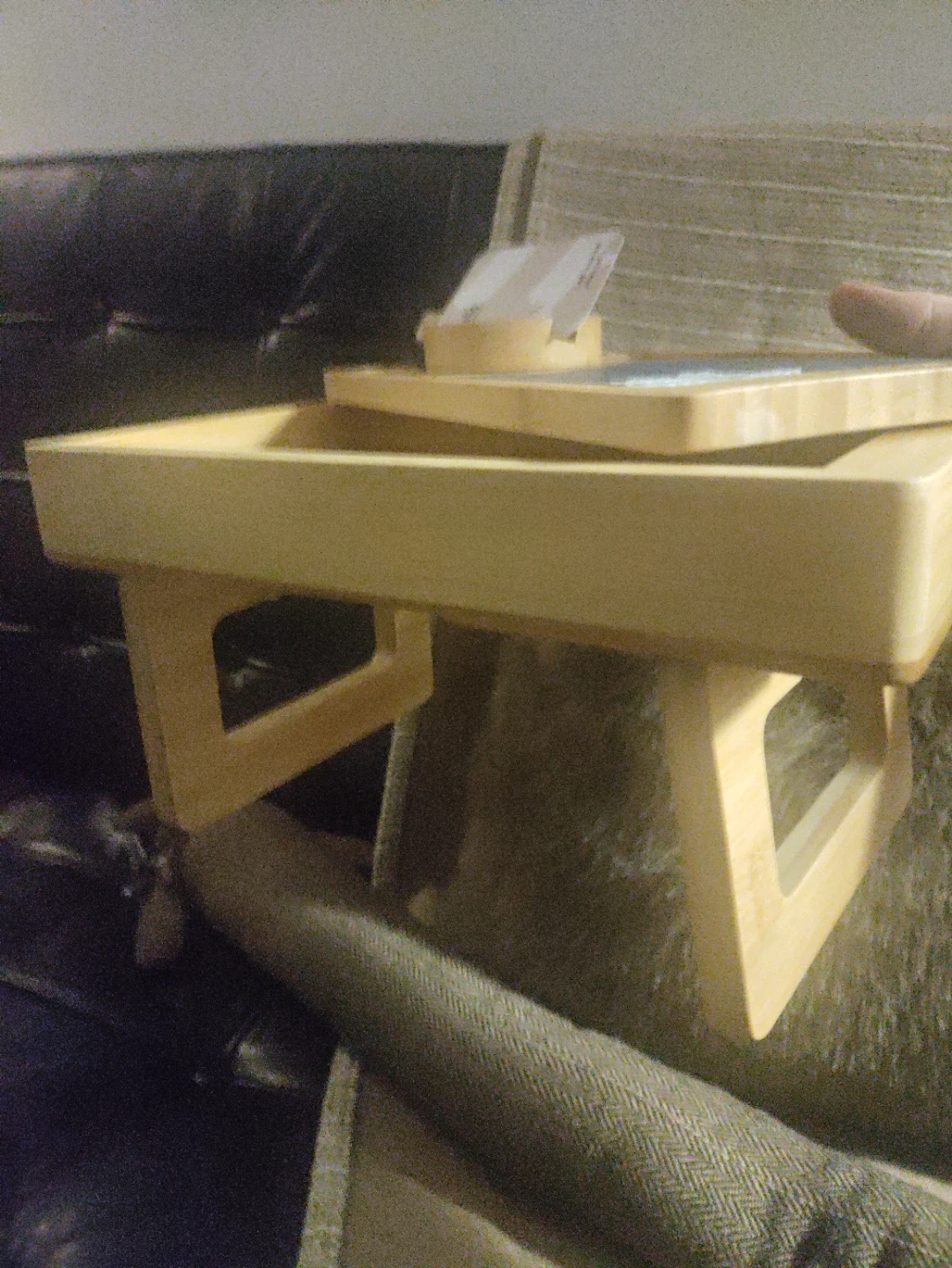 Selling a Weelone mini bamboo sofa armrest table. It's in great condition and perfect for keeping things within easy reach while you relax on the couch