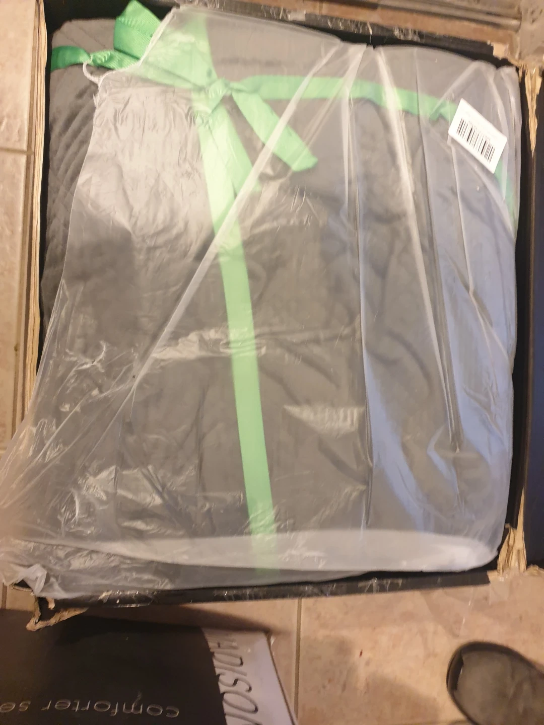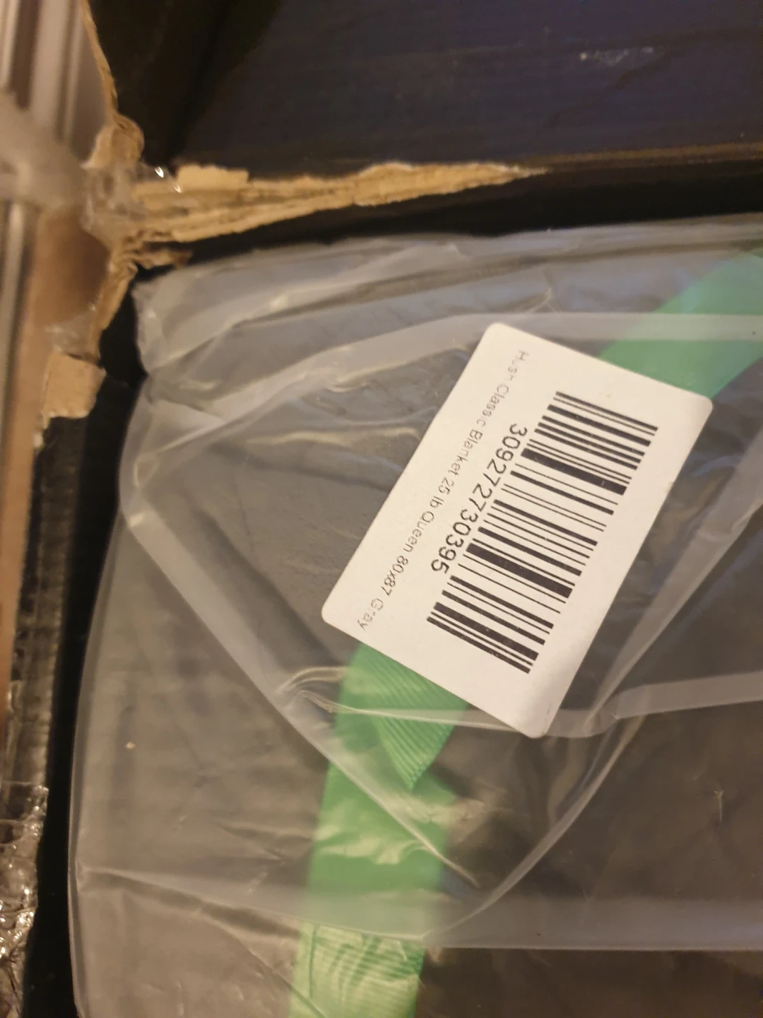 Queen 25 lb and is 80" x 87", have in packaging but the boz is broken.