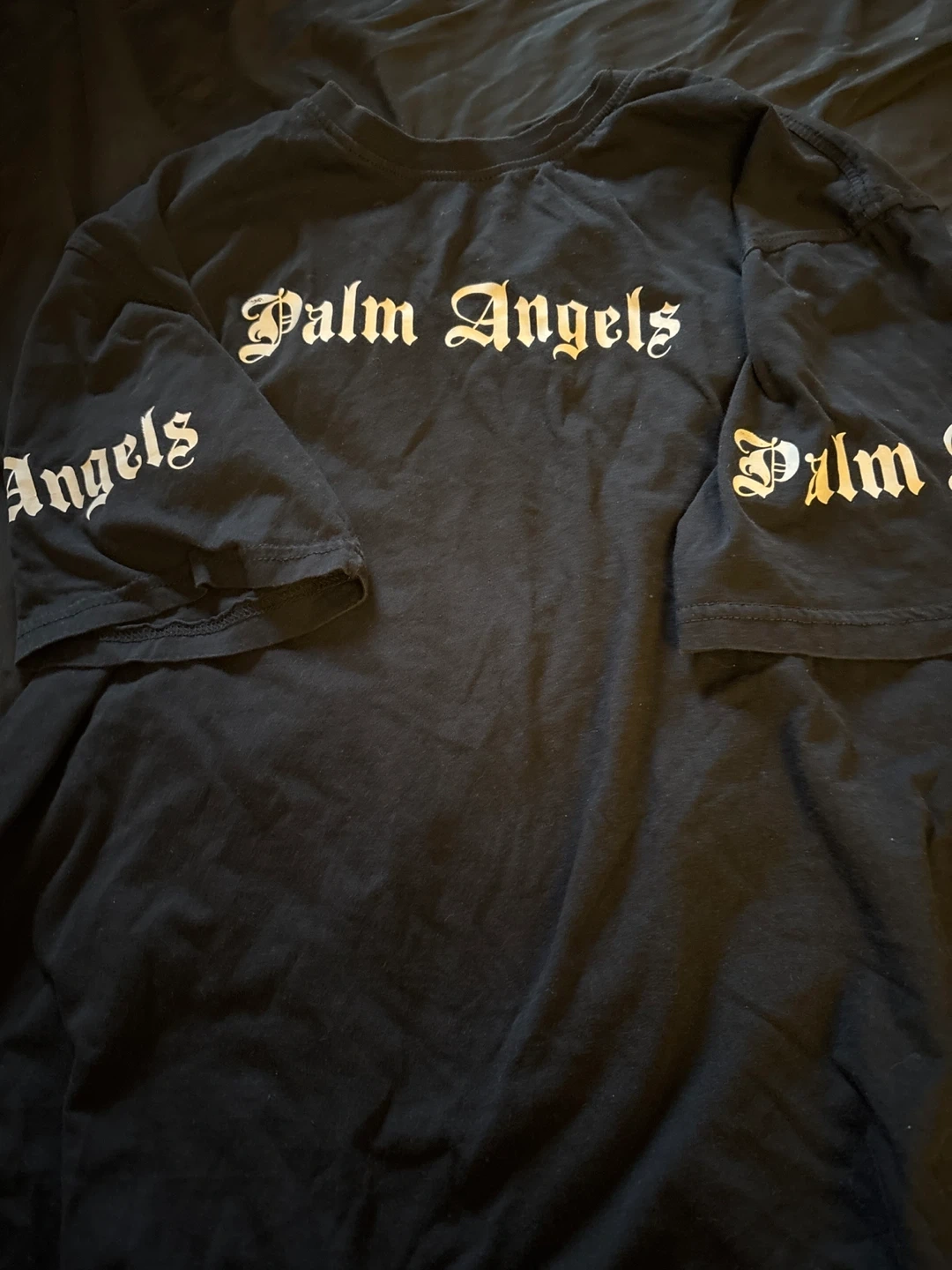 Buy & SellPalm Angels Black T-ShirtPalm Angels Black T-Shirt$47Selling a black Palm Angels t-shirt. It features the brand name on the front and angel wings on the back. A stylish piece for your wardrobe!BrandPalm AngelsWHERE TO MEETCheck LocationView MapSELLERverifiedcoalCentral Oakville620 reviews0 chats·0 favorites·13 viewsSEND CHAT TO SELLERHi coal! I’m interested in your listing.Hi coal! I’m interested in your listing.Get the Karrot app to chatSign In to chat