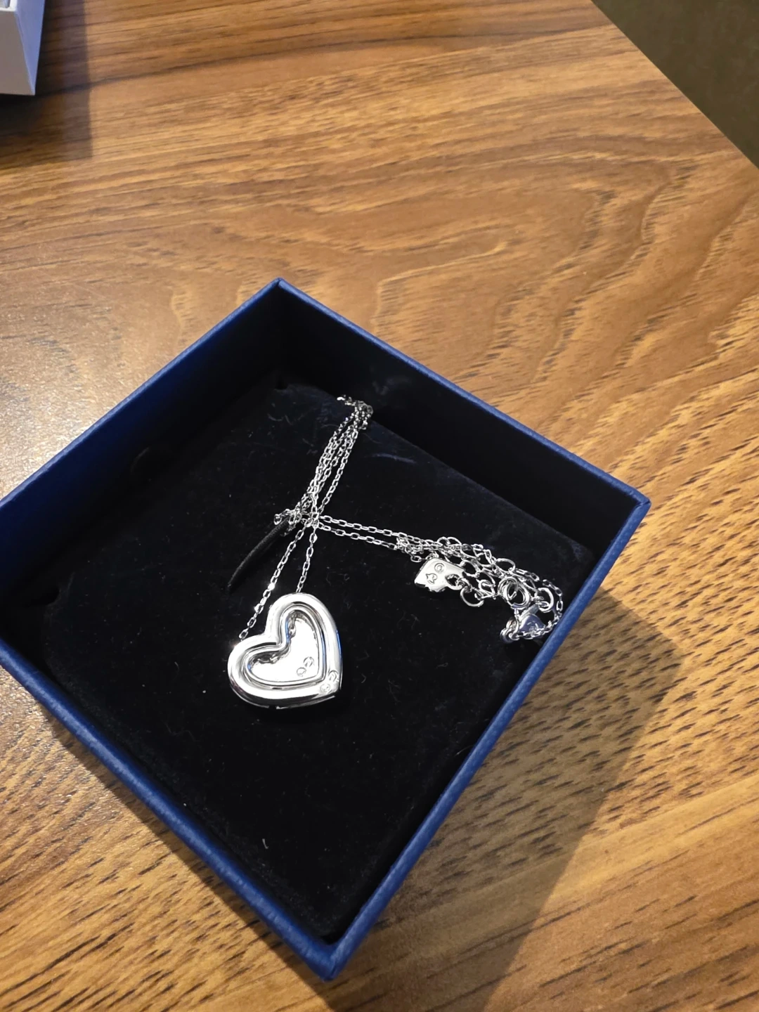 Selling a beautiful Swarovski heart necklace in excellent condition! It comes with its original box, making it perfect for gifting or treating yourself. The necklace features a delicate silver chain and a stunning heart pendant adorned with sparkling crystals. It's a timeless piece that will add a touch of elegance to any outfit