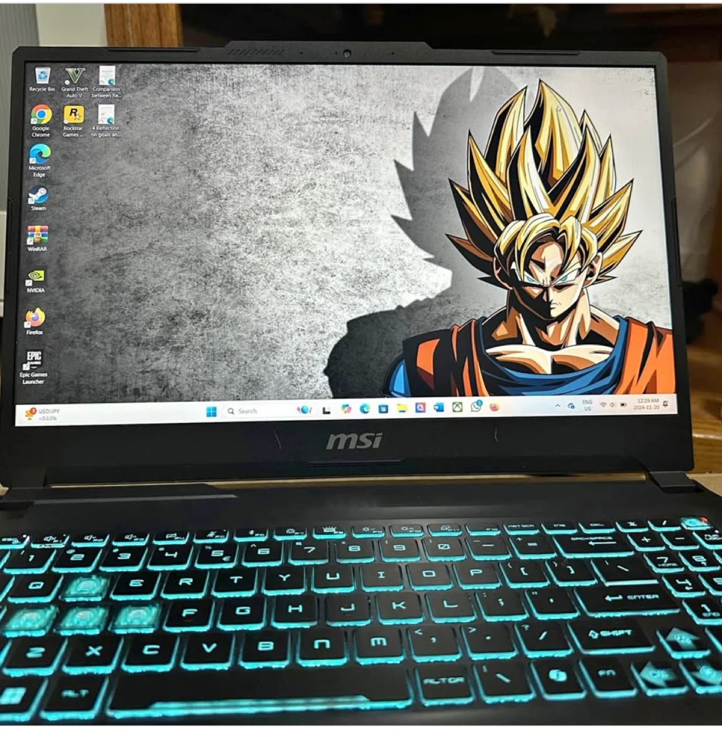 Selling an MSI gaming laptop. The keyboard has a cool blue backlight.