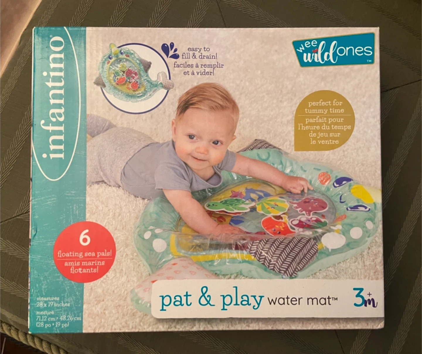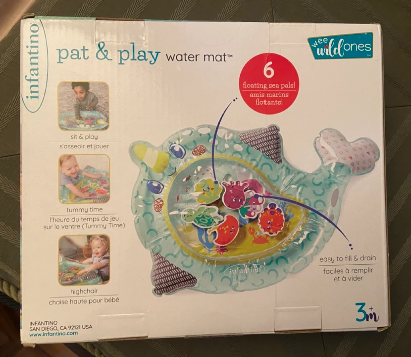 Selling a brand new Infantino Pat & Play Water Mat, still in its original box! This fun mat is perfect for tummy time and sit & play. It comes with 6 floating sea pals to keep your little one entertained. Recommended for ages 3 months and up. Easy to fill and drain for convenient use.