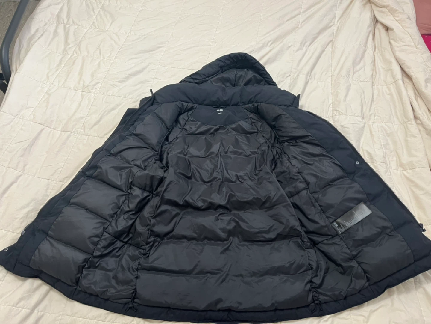 Selling a Uniqlo black down puffer coat. It's in great condition and super warm for the Canadian winter! Perfect for staying cozy while braving the cold weather.