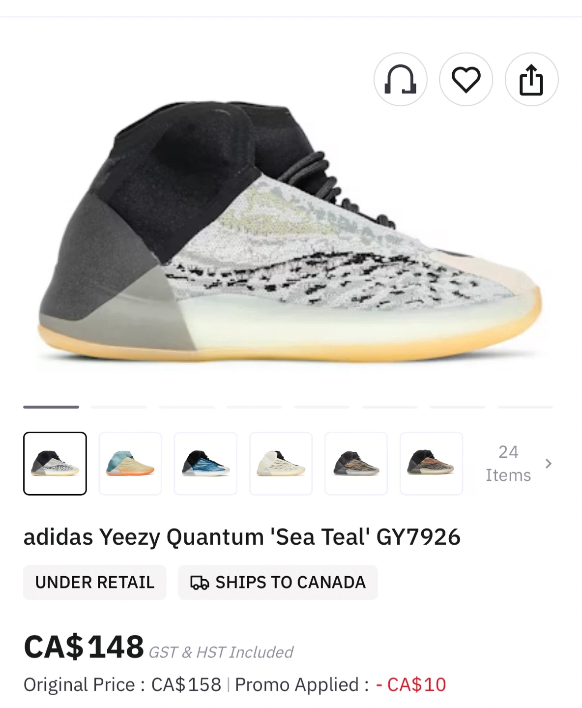 • Comfortable and durable Selling a pair of Adidas Yeezy Quantum sneakers in the Sea Teal colourway. These are a stylish and comfortable shoe, perfect for everyday wear. They come with the original box. Retails for CA$158.