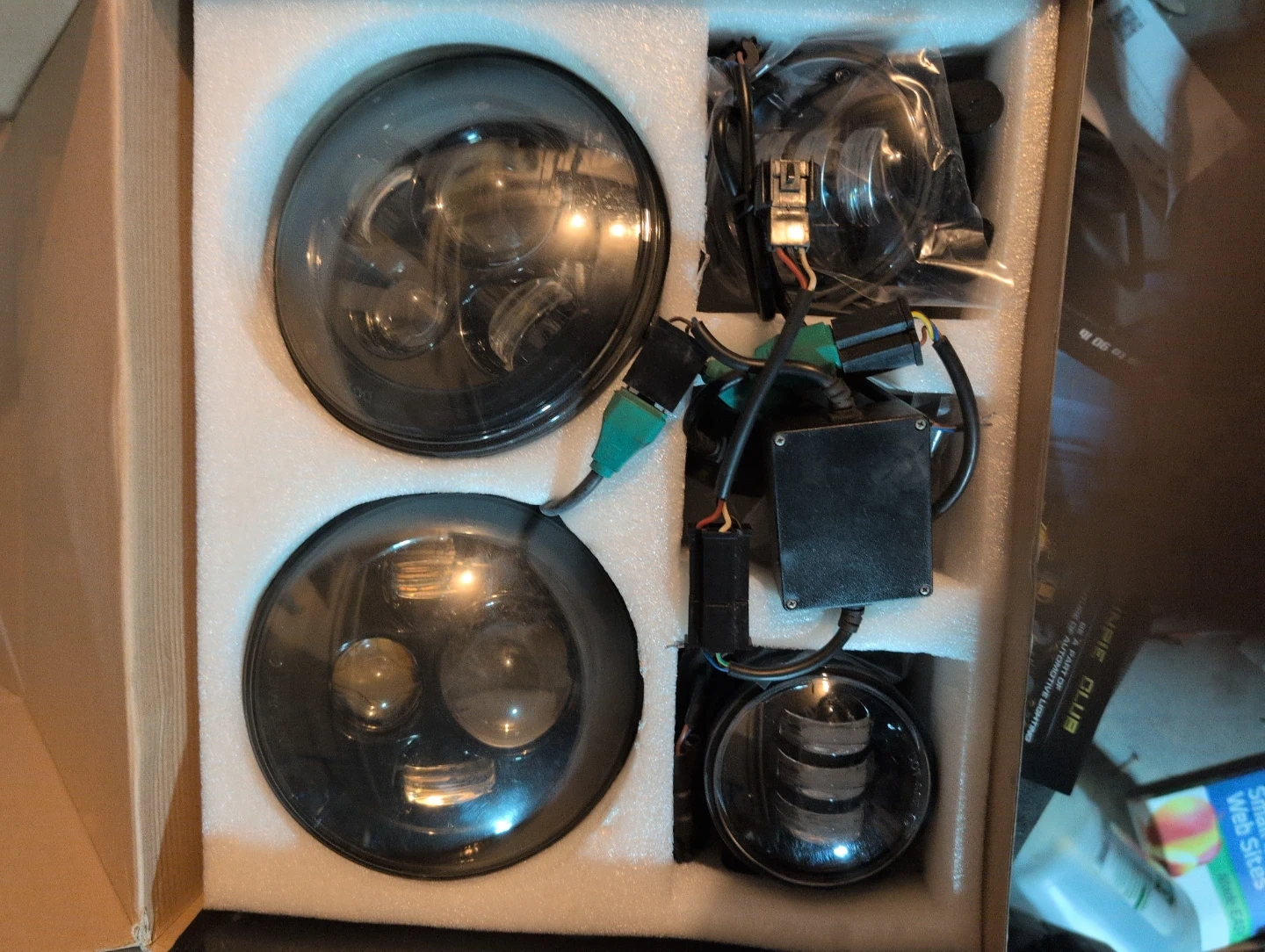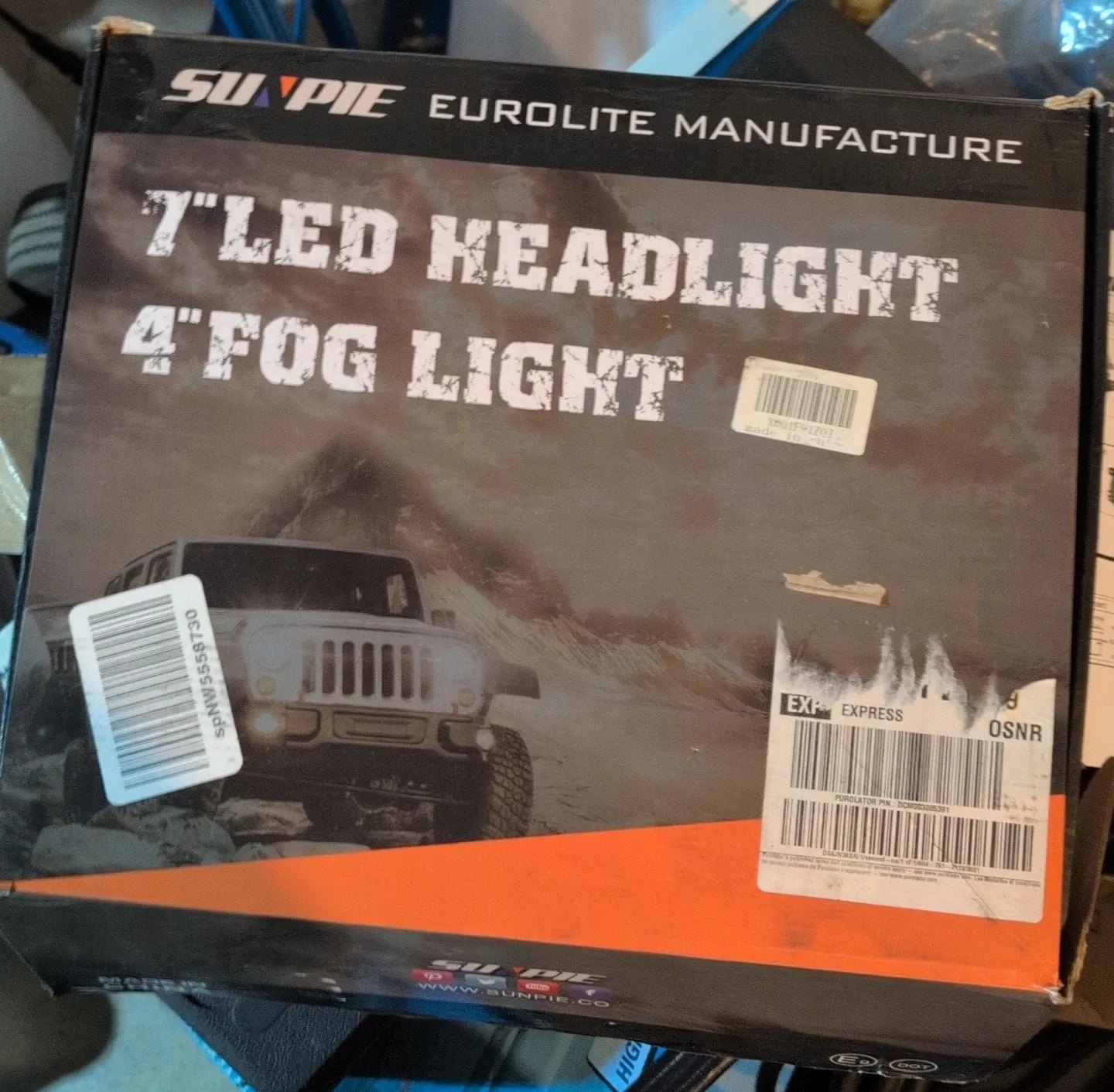 Selling a set of Sunpie 7" LED Headlights and 4" Fog Lights designed for a Jeep Wrangler.