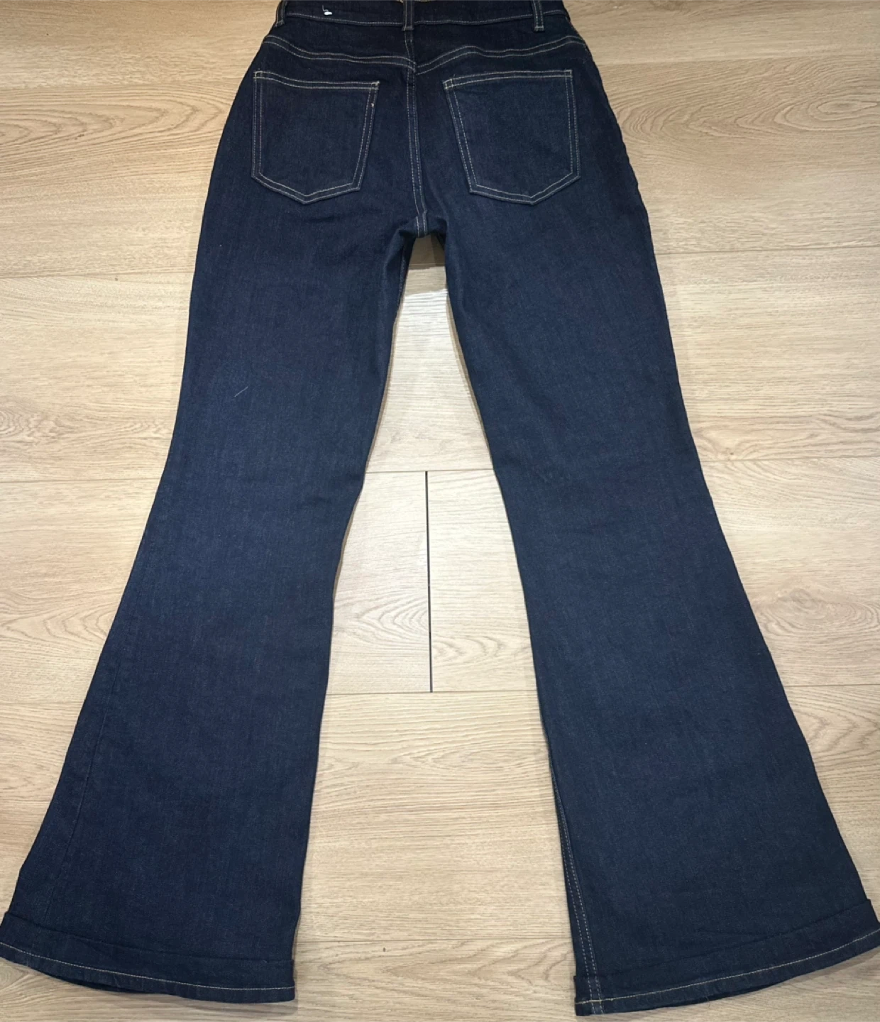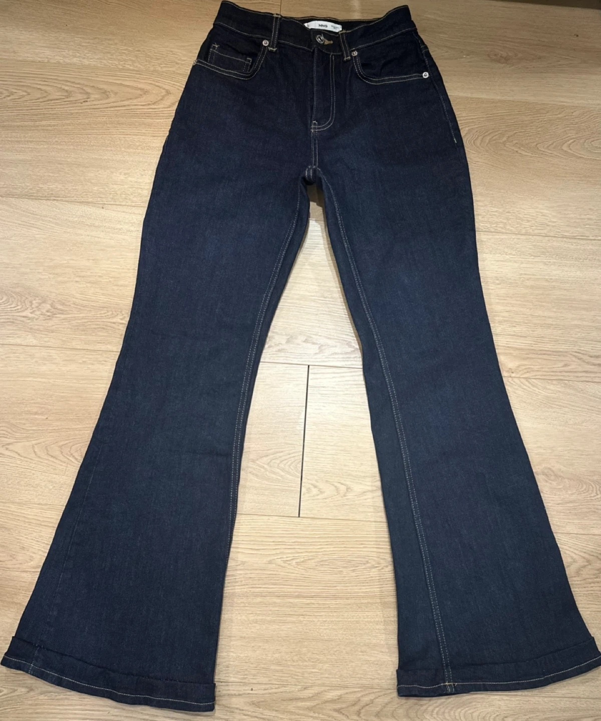 MNG Mango High-Waisted Flare Denim - Dark Indigo - Size 37