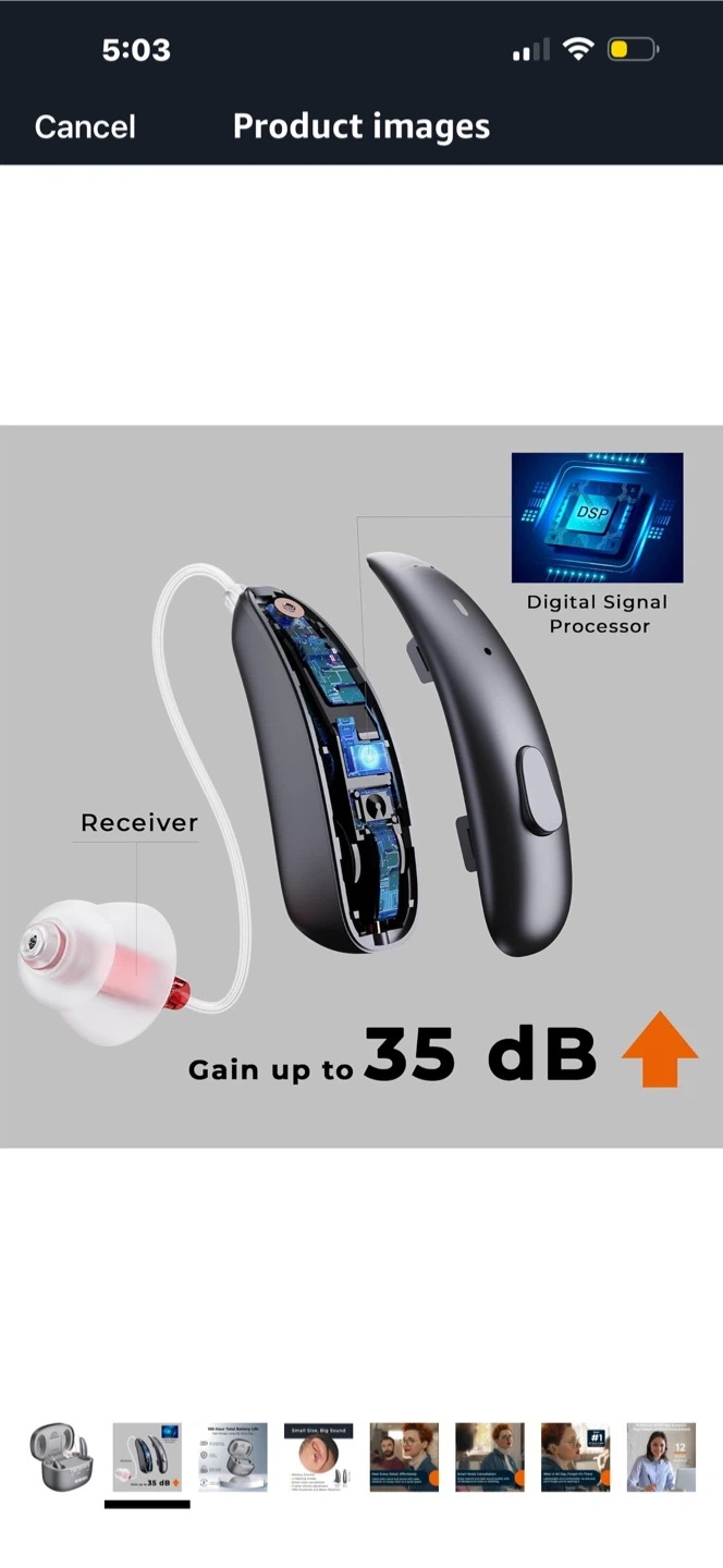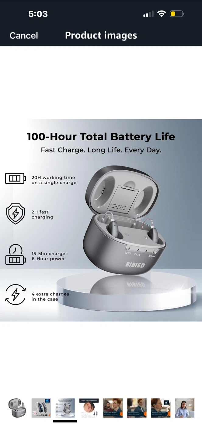 Selling a pair of BIBIED OTC rechargeable hearing aids in grey. These are designed for seniors and adults with mild to moderate hearing loss. They feature smart noise reduction and superior sound quality.