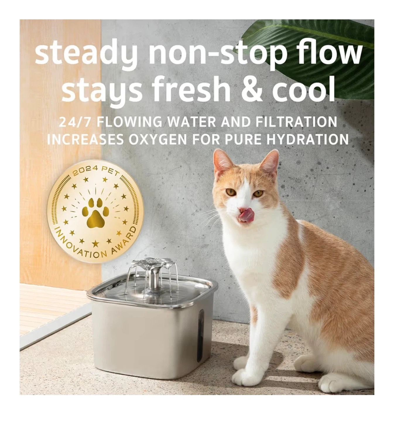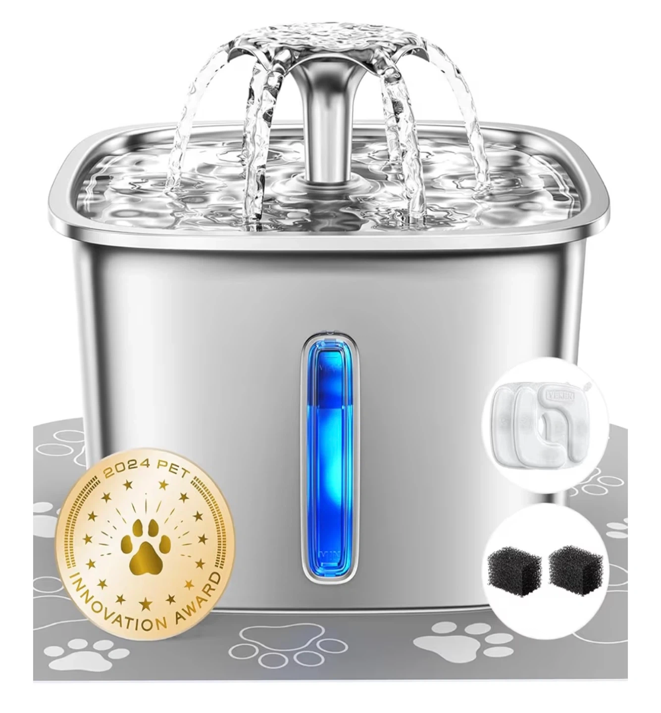 Keep your furry friend hydrated with the VEKEN Pet Fountain! This stainless steel fountain provides a steady, non-stop flow of fresh and cool water 24/7, thanks to its filtration system that increases oxygen for pure hydration. It's also won the 2024 Pet Innovation Award!