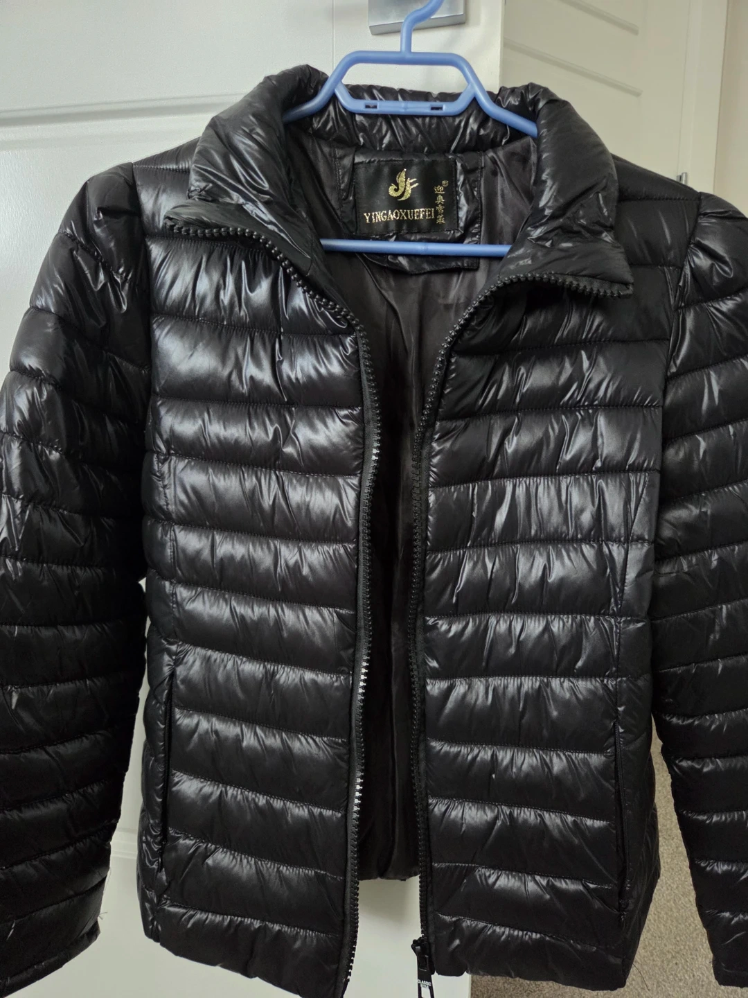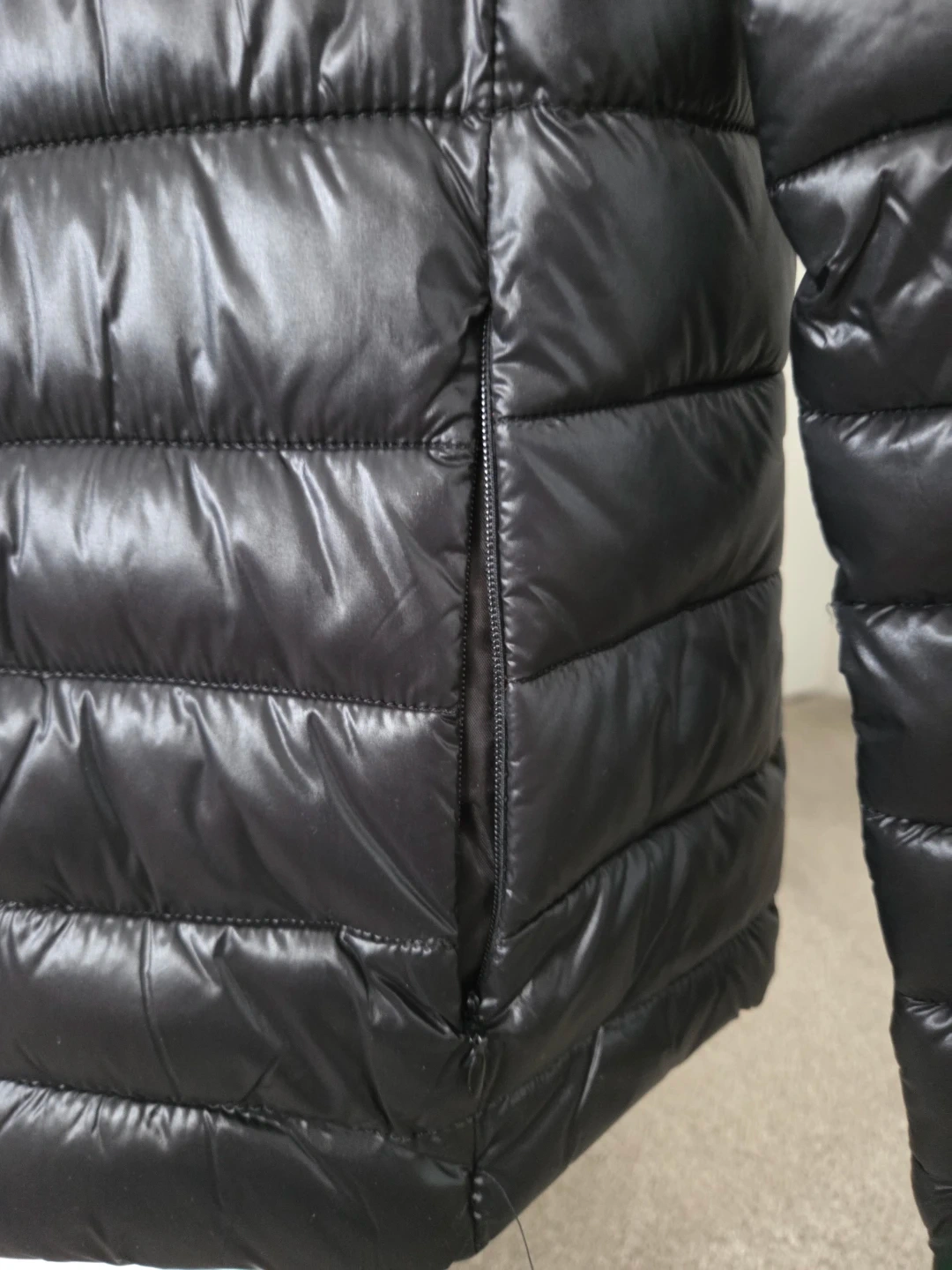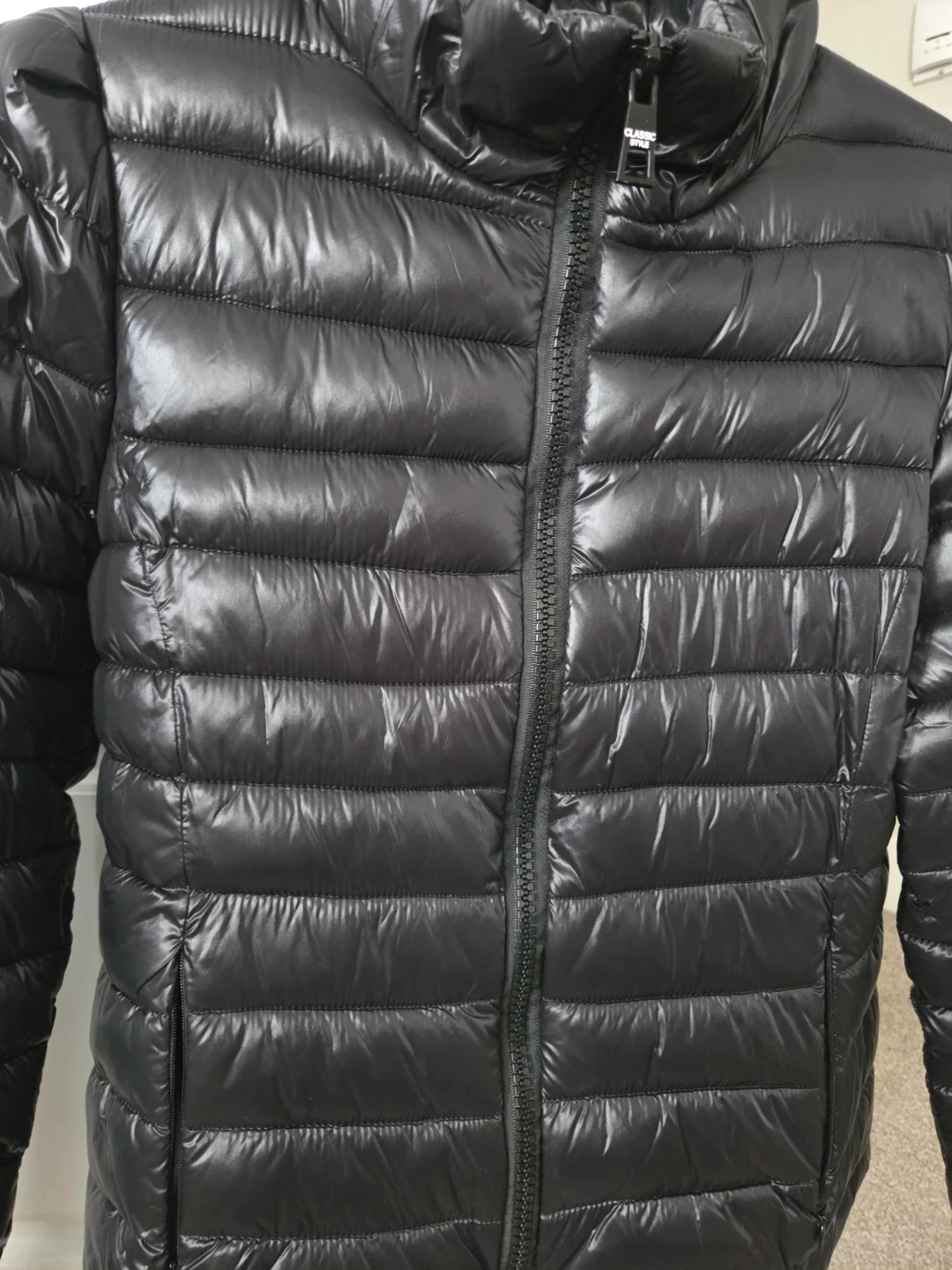 Hardly worn sleek black puffer jacket in excellent condition. Its like brand new and very lightweight with quilted design. The jacket features a full zip and ziper pockets. It doesn't say the size but its size small.