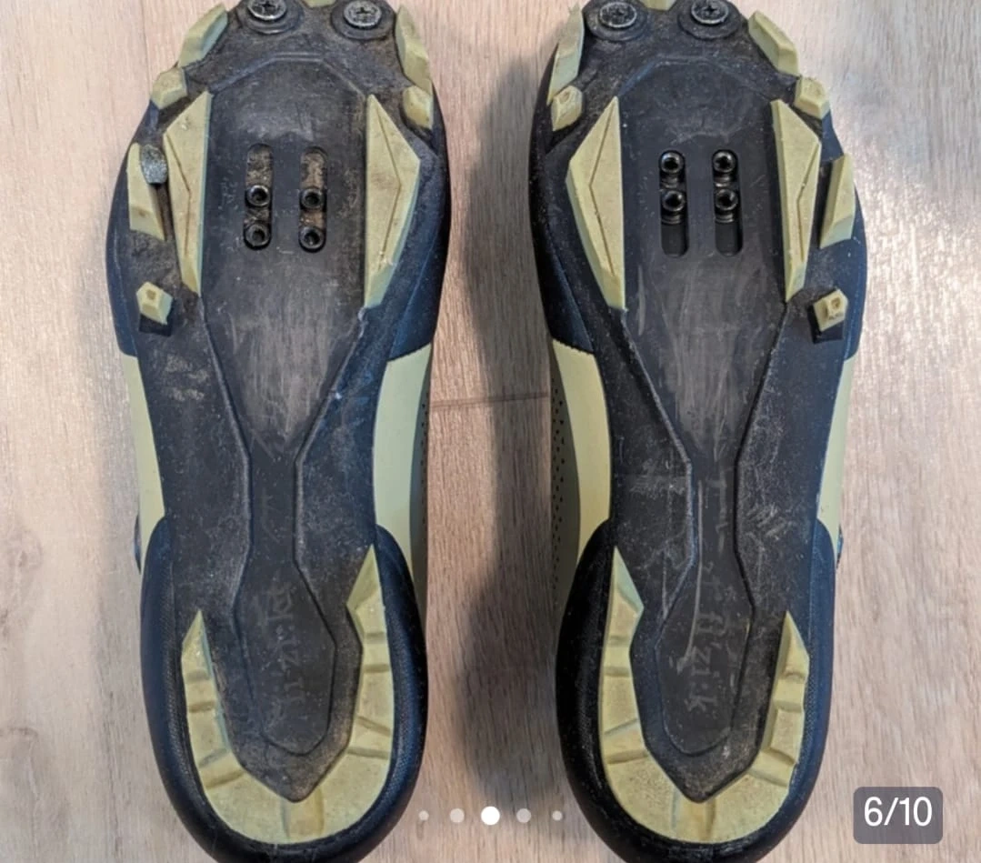 They show some signs of wear on the soles, but only worn three times. Sold my bicycle and no need for them anymore 🥲. Otherwise in good condition.