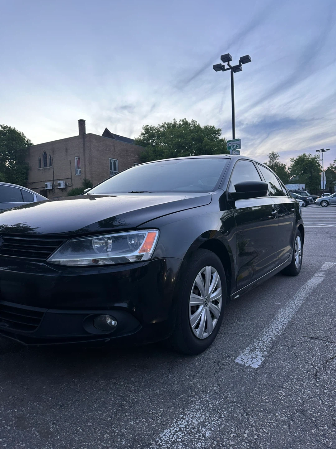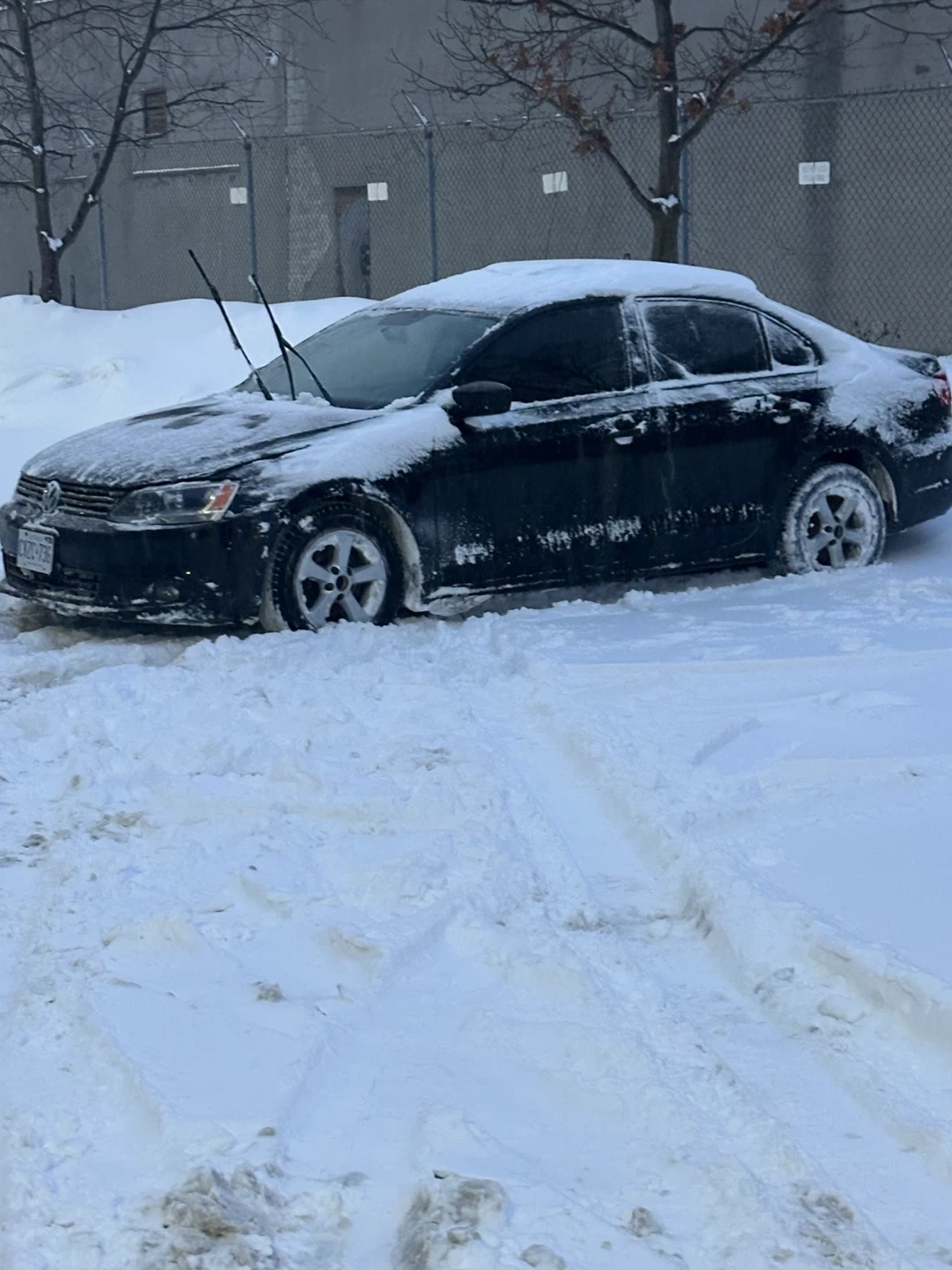 I'm selling my black Volkswagen Jetta. There's some wear on the front bumper, as you can see in the photo. The paint is in good condition for its age and has a few minor imperfections, but nothing serious. It drives very well. 2.0L engine, 5-speed manual transmission, 189,000 km, almost no rust. You can make me an offer.