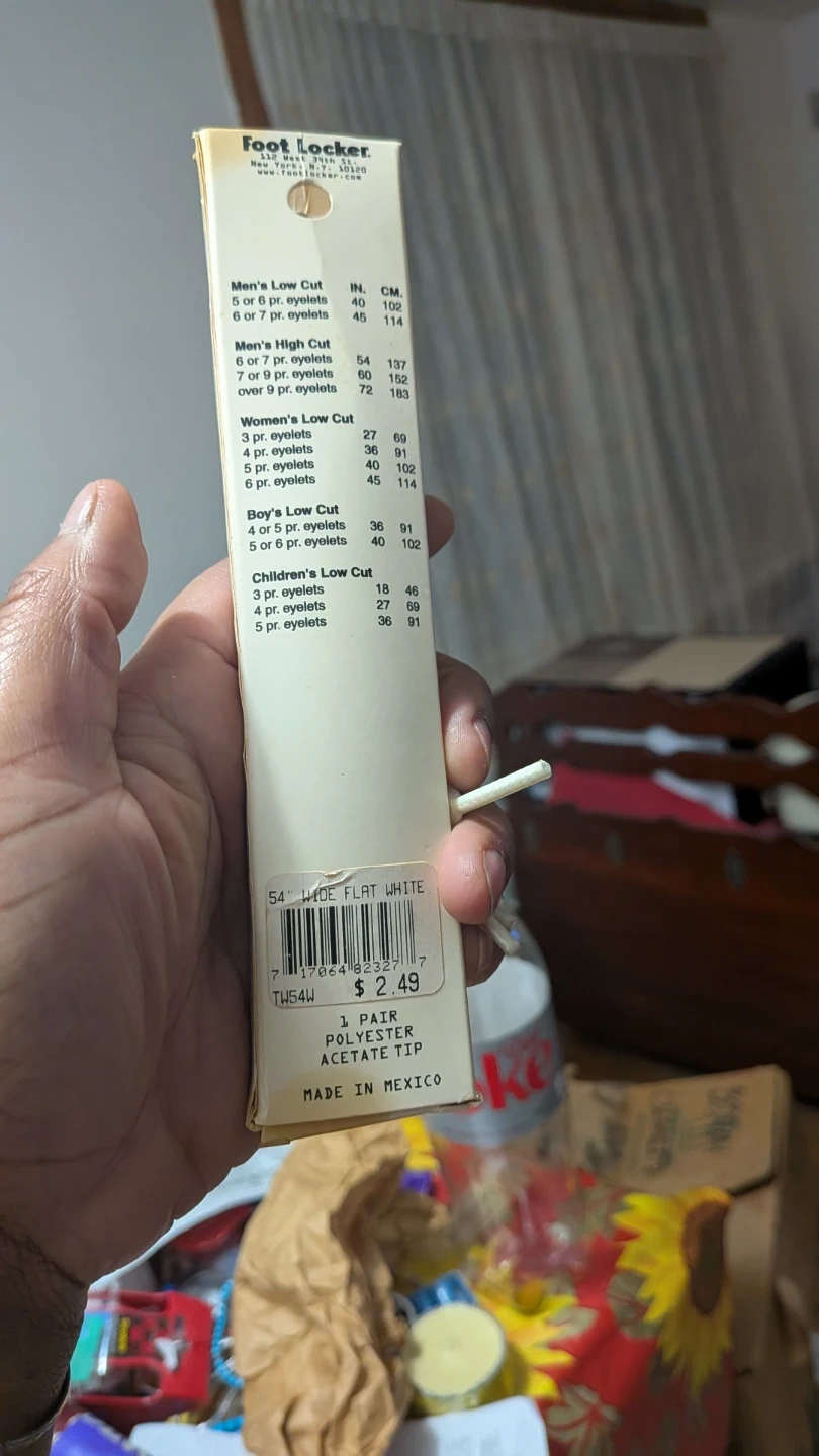Selling a brand new pair of Foot Locker 54-inch white flat shoelaces! They're still in the original packaging. The laces are made of 1 pair of polyester with an acetate tip.