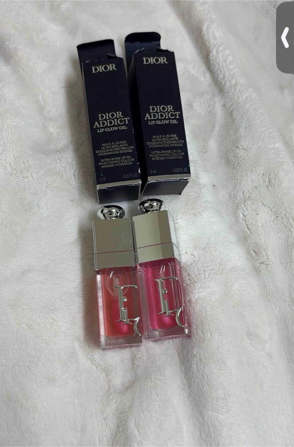 Selling a Dior Addict Lip Glow Oil in the 007 Raspberry colour and 001 Pink! It provides a juicy finish and ultra-shine, plus intense hydration. Originally bought for $54 and comes in its box.