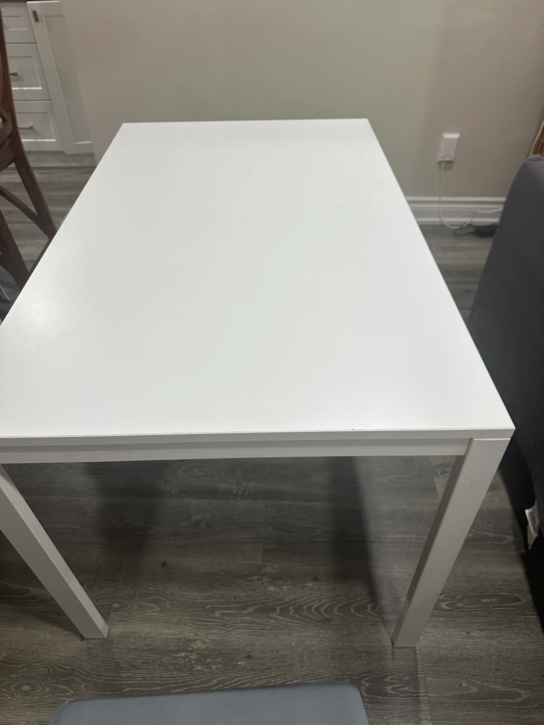 Selling a clean and simple white dining table! It's in great shape and ready to brighten up your dining area or kitchen. Perfect for small spaces or anyone looking for a minimalist style table