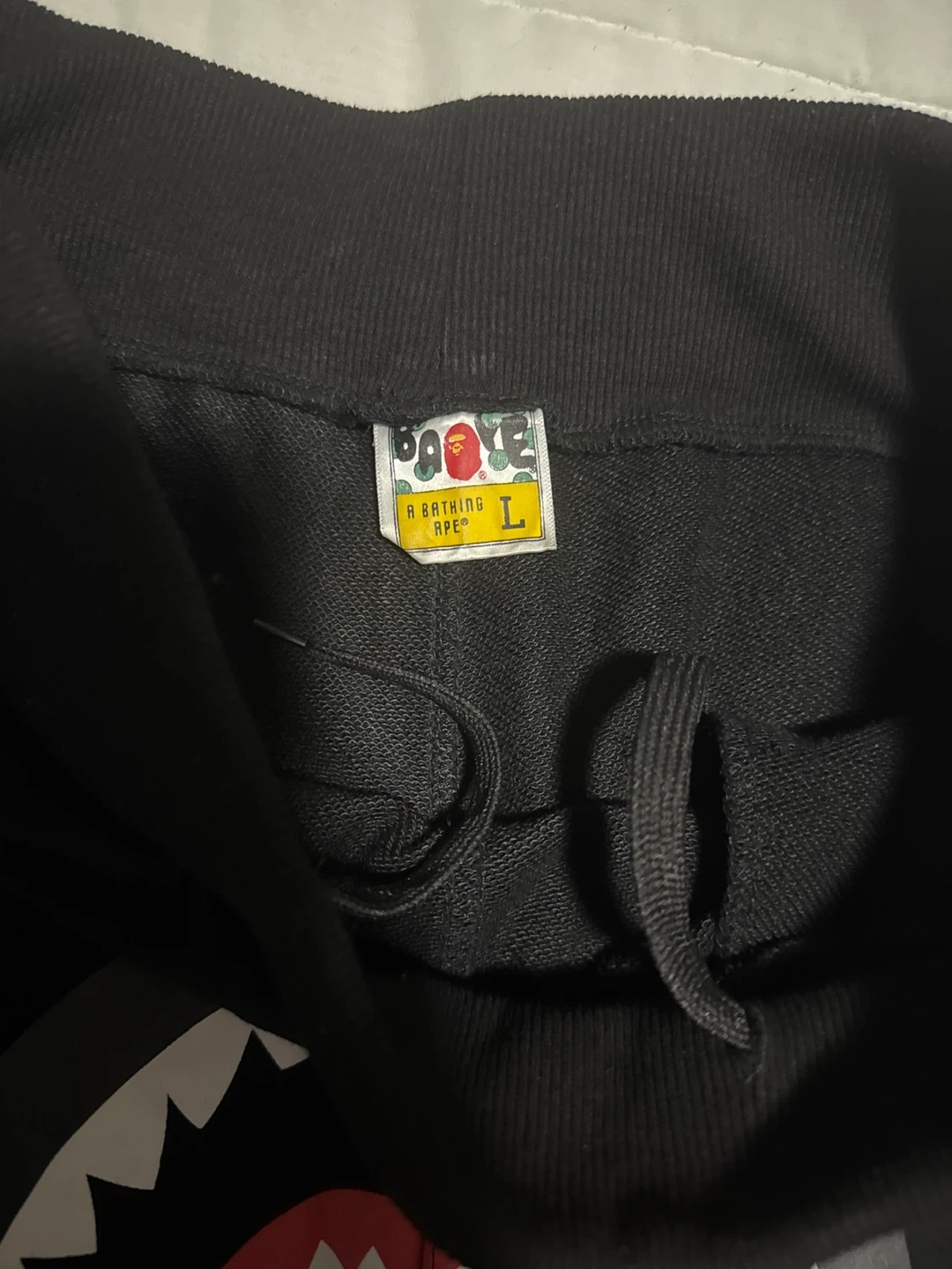 Selling a pair of BAPE black shark shorts in size large! These shorts feature the iconic shark design and are in great condition. Perfect for adding a unique touch to your wardrobe!